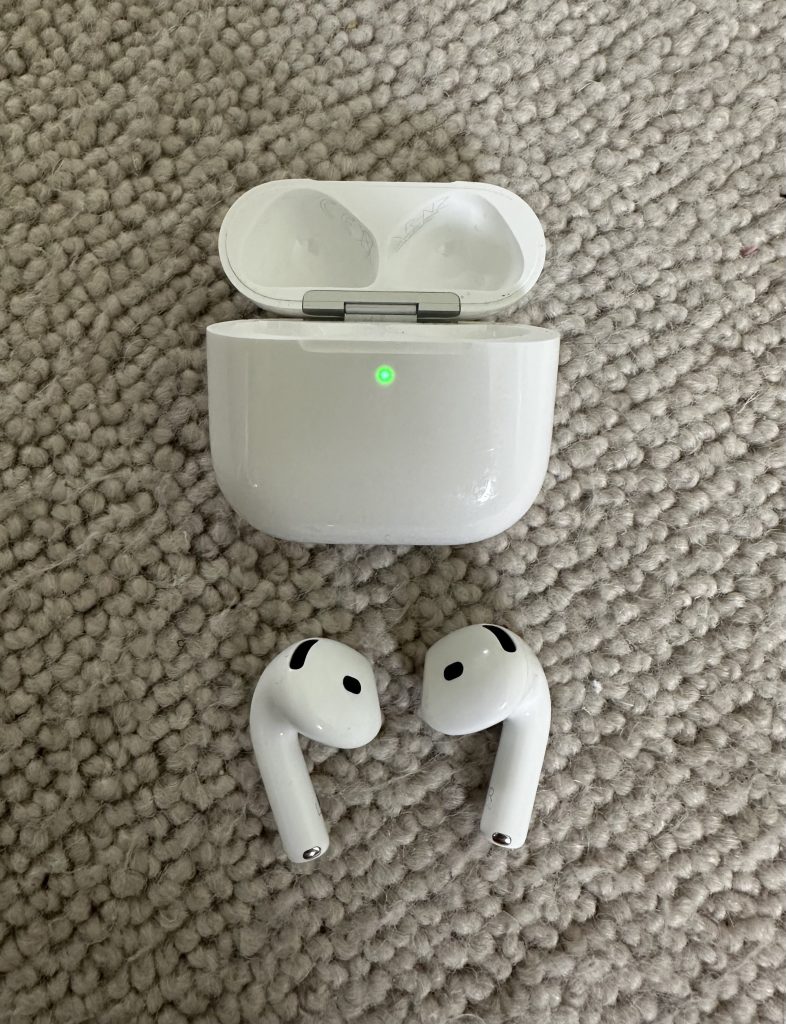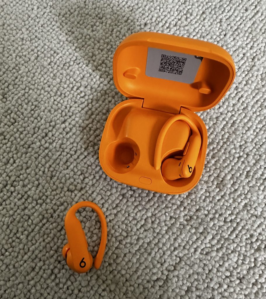 Trzecia para to mój najnowszy nabytek. Kupiłam je parę miesięcy temu kiedy zaczęłam ponownie ćwiczyć. To mój drugi model tych słuchawek, poprzednie były połączone małym kabelkiem. To są słuchawki stricte sportowe, które dobrze trzymają się na uchu. Słuchawki mają w zestawie pięć rozmiarów nakładek, które idą do ucha więc można je dobrze dopasować. Ale najlepszy bajer jest taki, że mają wbudowany sensor, który mierzy puls. Do tej pory korzystałam z paska na klatkę piersiową, a tu taka niespodzianka. Marka Beats należy do Apple więc słuchawki bezproblemowo synchronizują się z ich produktami i aplikacjami (zrezygnowałam z abonamentu na aplikację FIIT i teraz korzystam w płatnej wersji Apple Fitness+).