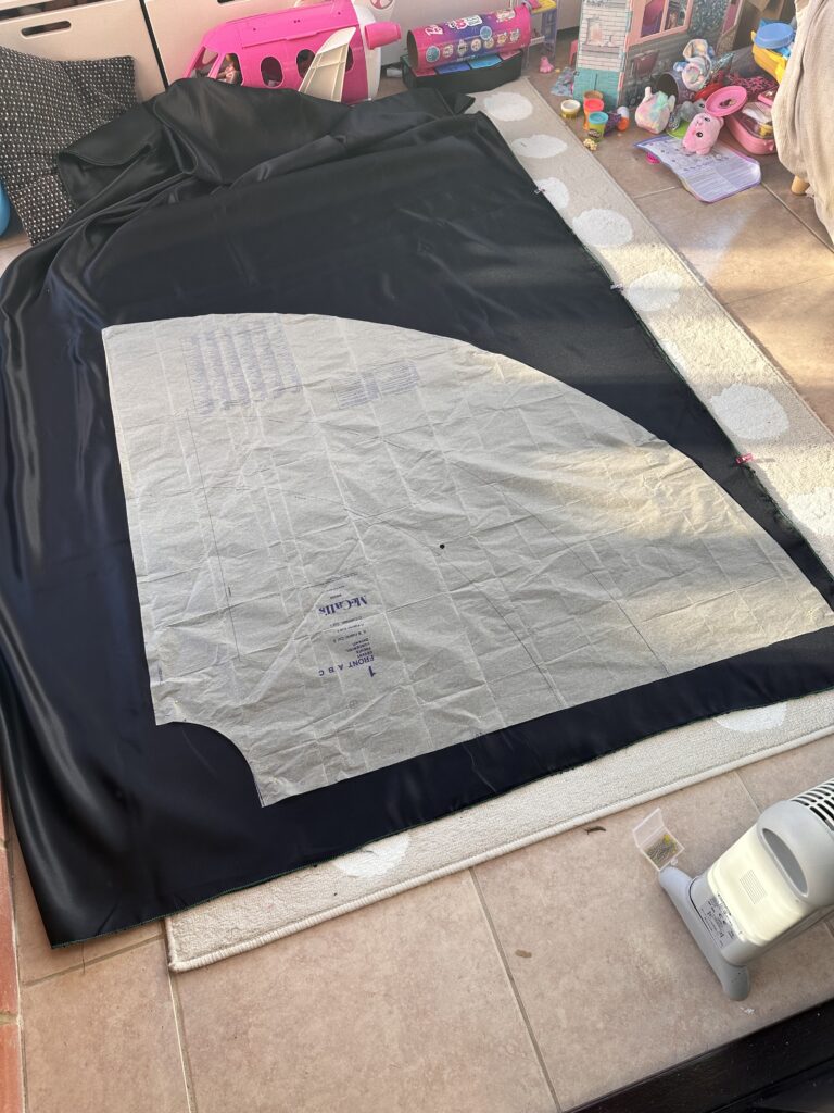 Dół natomiast to ogromna spódnica z czarnej, bardzo taniej satyny (klik) bo potrzebowałam aż pięć metrów materiału. Po raz pierwszy szyłam ją z papierowego wykroju od Simplicity. Jeśli dobrze się orientuję, to jest to amerykańska firma, która publikuje wykroje do szycia pod kilkoma nazwami: Simplicity, McCall’s, Butterkick, Vogue, Burda i inne (klik).