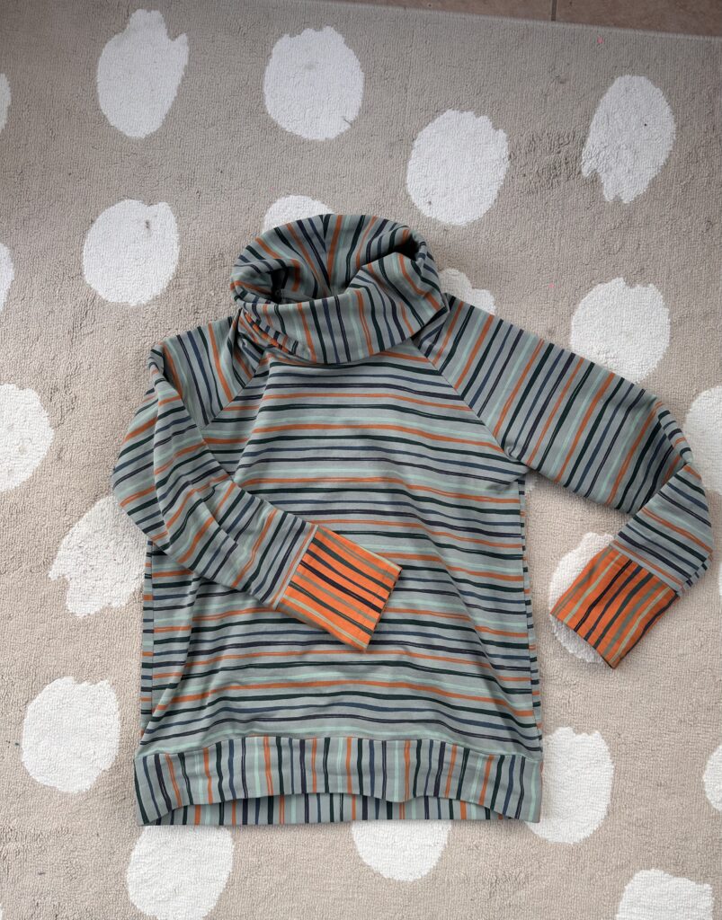 Góra to Toaster sweater (klik), wykrój, który miałam w swojej kolekcji kilka dobrych lat i wreszcie doczekał się pierwszego uszytku. Uszyłam go z dobrej jakościowo dzianiny punto z tencelem (Minerva, klik) bo doszłam do wniosku, że będę go też nosić na inne okazje.