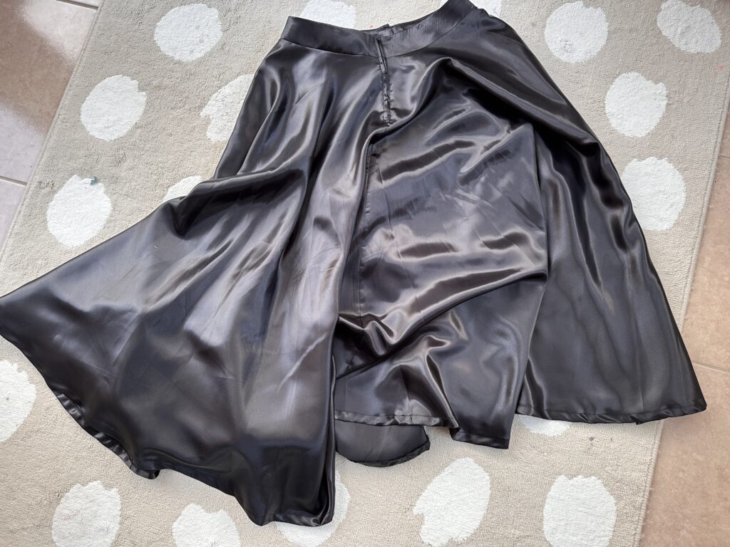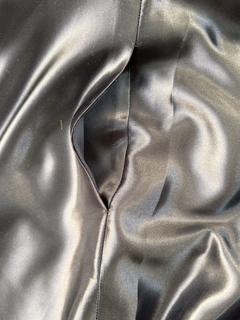 Szycie z satyny nie jest łatwe ale dałam radę. Nawet zamek wygląda nieźle, jak na pierwszy raz. Ponieważ spódnica jest ogromna, nie musiałam się za bardzo martwić wyglądem szwów, bo nie są zbyt widoczne. Jestem dumna, jak ładnie udało mi się wszyć boczne kieszenie.