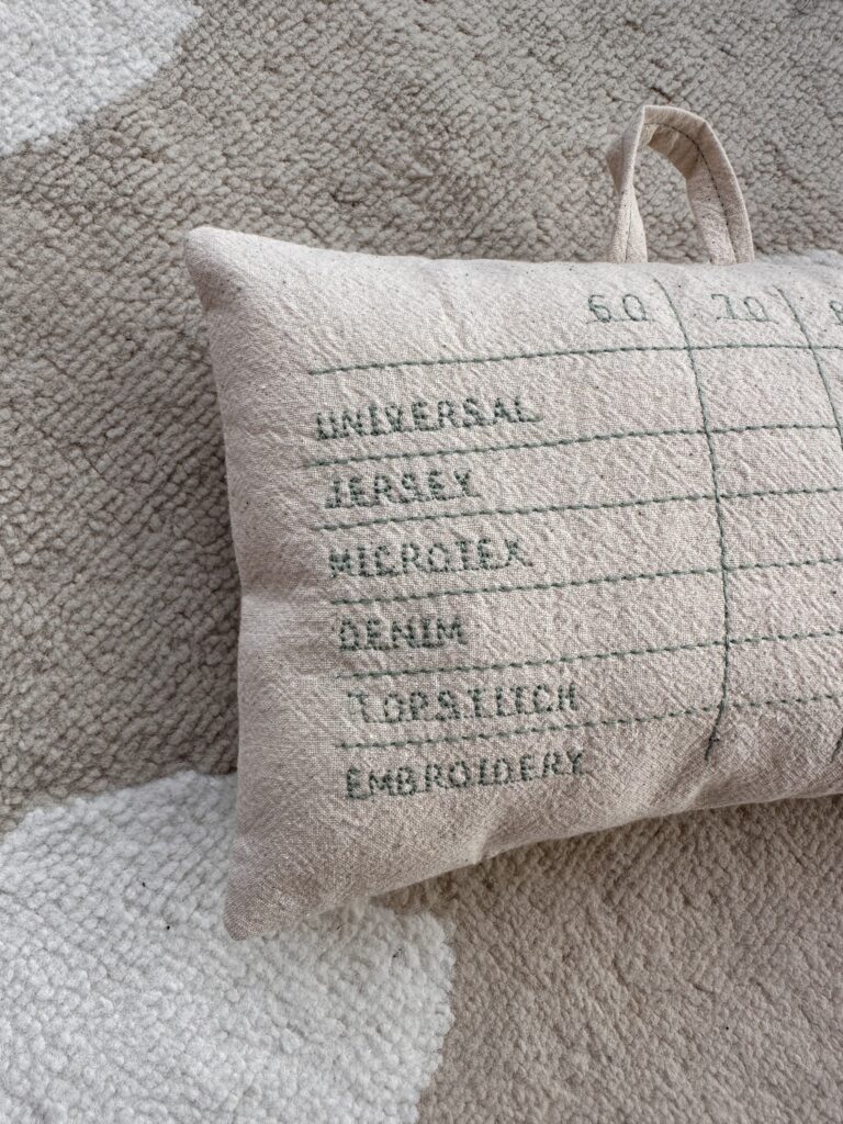 Mam ten sam problem, zawijałam w karteczki z opisem, wkładałam x powrotem do pudełka, ale jakoś inaczej (np w drugą stronę), odkładałam gdzieś “na chwilę” i wszystko zapominałam. A teraz siedzi mi w maszynie igła, o której nic nie wiem i boję się zmienić, bo znowu mi się pomyli. Chyba też zrobię sobie taką miękką tabelkę, ale bez haftowania.