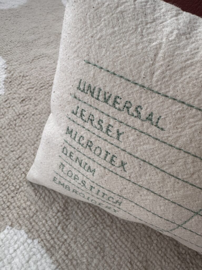 Użyłam czcionki o szerokości 5mm, a linie zrobione są podwójnym ściegiem prostym. Przy wyszywaniu posiłkowałam się mazakiem, który znika po zmoczeniu tkaniny. Myślę, że to fajny sposób na wykorzystanie alfabetu w maszynie.