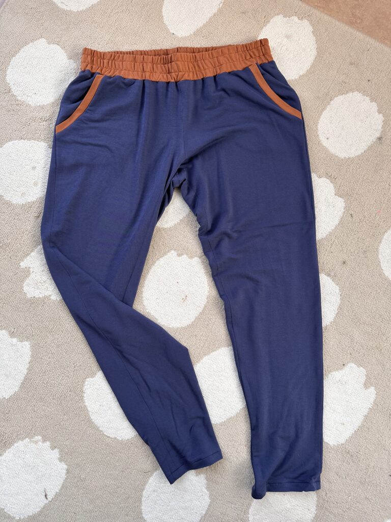 A dla kogoś, kogo niedługo czeka operacja ortopedyczna uszyłam spodnie szpitalne do zadań specjalnych. Ciekawa jestem czy zdadzą egzamin. Po raz pierwszy wszyłam gumę używając coverlocka.