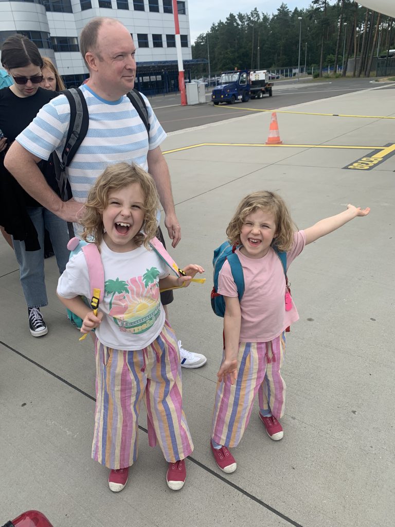Do Krakowa polecieliśmy samolotem, do Goleniowa zawiózł nas Pan Kapitan. Dziewczynkom bardzo się podobało, że samolot miał namalowaną pszczołę i nazywał się Buzz.