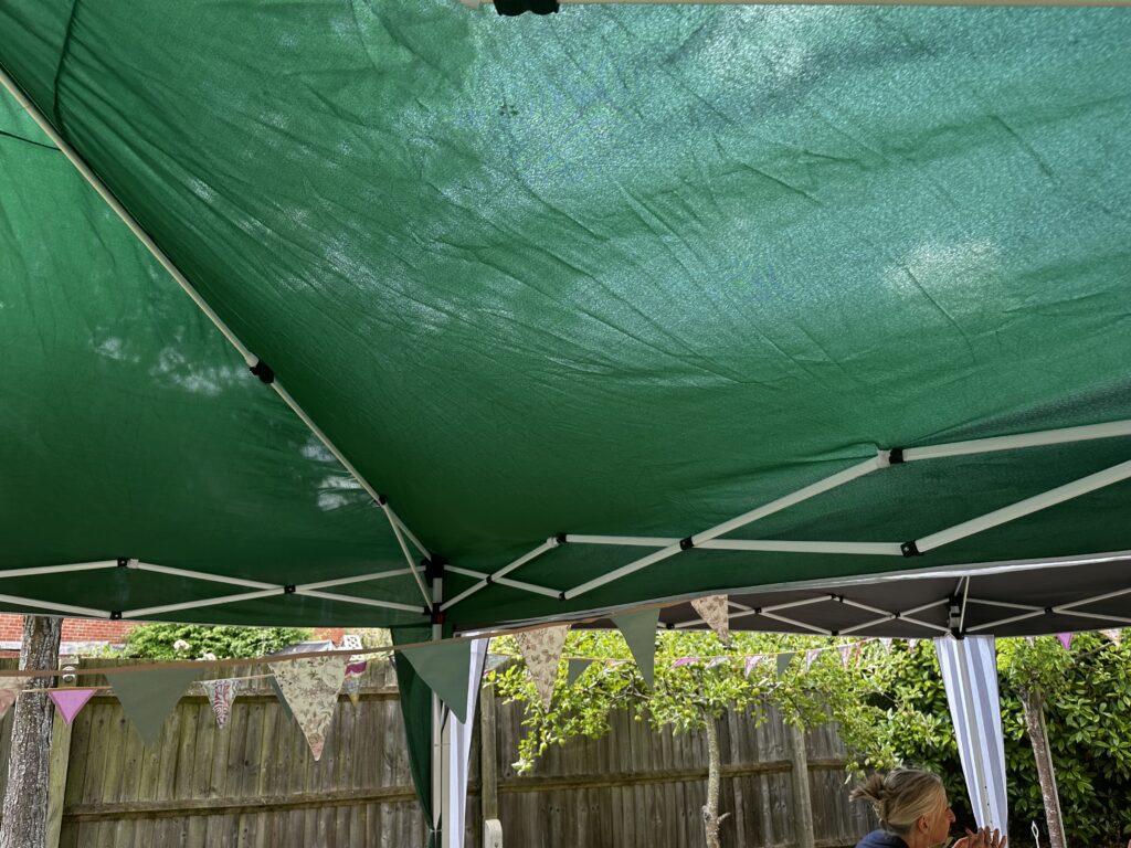 W sobotę byłam na herbatce dobroczynnej u koleżanki z pracy. Oto jak moje chorągiewki prezentowały się w jej ogrodzie:
