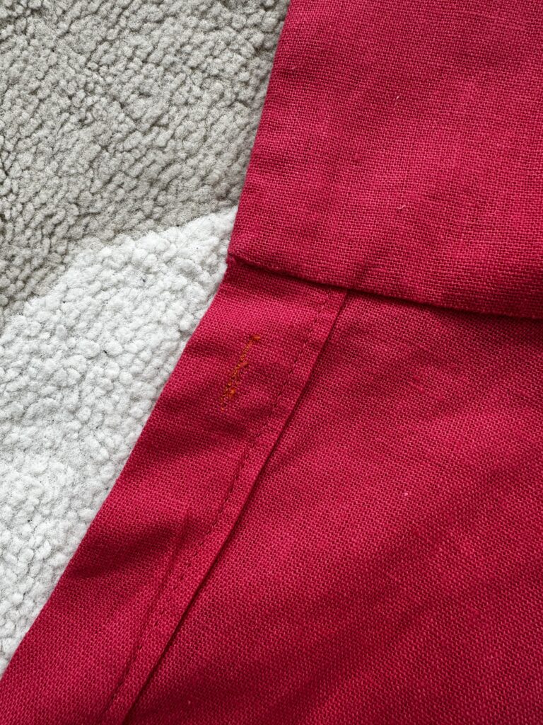 Absolutnie serio radzę postukać zbiegi szwów młotkiem – trudno uwierzyć w skuteczność, aż się spróbuje. Pierwszy raz użyłam młotka przy dżinsie, potem przy zasłonach, i już wiedziałam, że jest on przyjacielem szyjących. Fastryga pomaga trwalej spłaszczyć (materiał się łatwo nie podniesie i nie dotknie sensora) i zapobiec przesuwaniu warstw. Na kołnierzyku to mniej potrzebne, ale przy większych połaciach bywa pomocne.