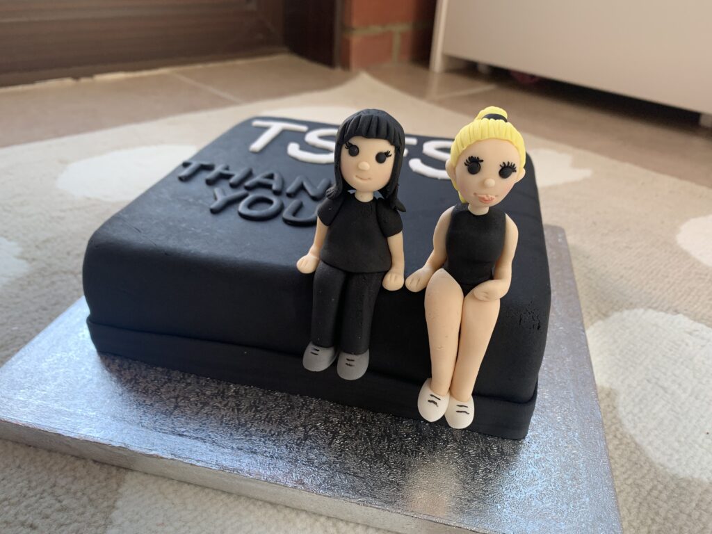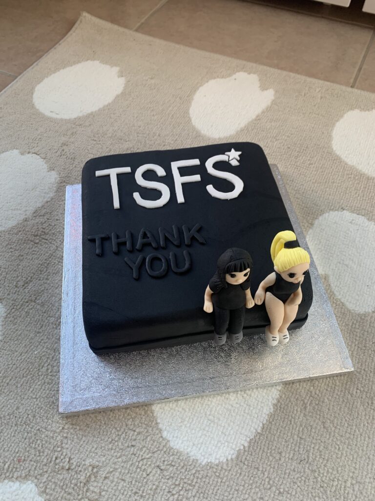 Byłam również bardzo mile zaskoczona całą reżyserią show, kostiumami i poziomem starszych dziewczynek. Ta szkoła tańca ma top drużynę, która co roku bierze udział w mistrzostwach świata, przed pandemią zdobyli srebro. Starsza P. ma zdecydowanie talent w tym kierunku. W tym roku wystąpiła w trzech osobnych układach. Po obejrzeniu pierwszego przedstawienia był taki wzrusz, że w ramach podziękowania postanowiłam zrobić właścicielkom (matka i córka)…. tort!