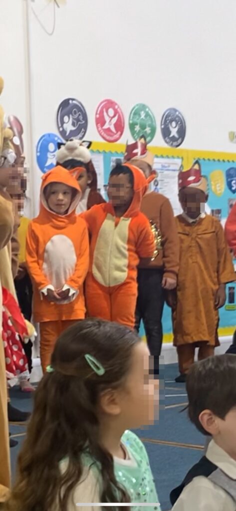 Młodsza P. miała swoje przedstawienie i debiut jako lis. Wśród dzieci wypatrzyłam jeszcze jeden kostium (sowy), który wyglądał mi na zrobiony ręcznie. I jak dla mnie wygrali rodzice dziecka w stroju myszy (brawa za interpretację kostiumu).