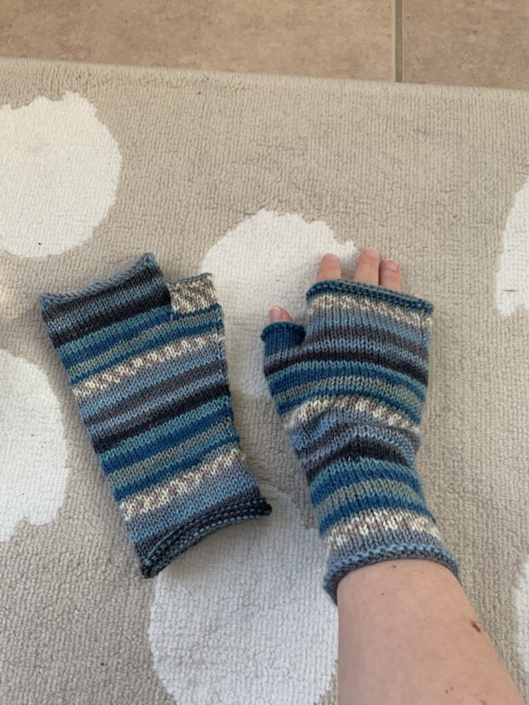 Wzór to Penny Gloves (klik) od Petite Knit. Mitenki powstały z jednego motka kolorowej włóczki Adriafil Knitcol, który kupiłam w sklepie z włóczkami w Oxfordzie. Kiedy zostało mi bardzo malutko włóczki na kciuk w drugiej mitence to zakupiłam kolejny motek, na wszelki wypadek. Na szczęście nie był potrzebny (mogę go zwrócić).