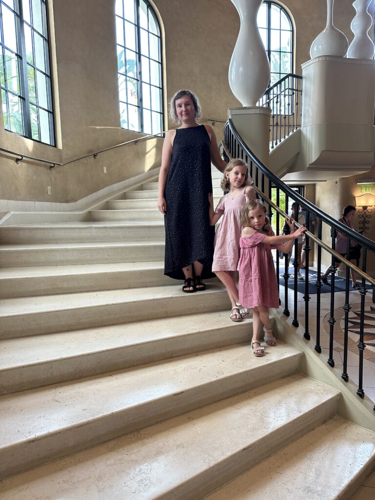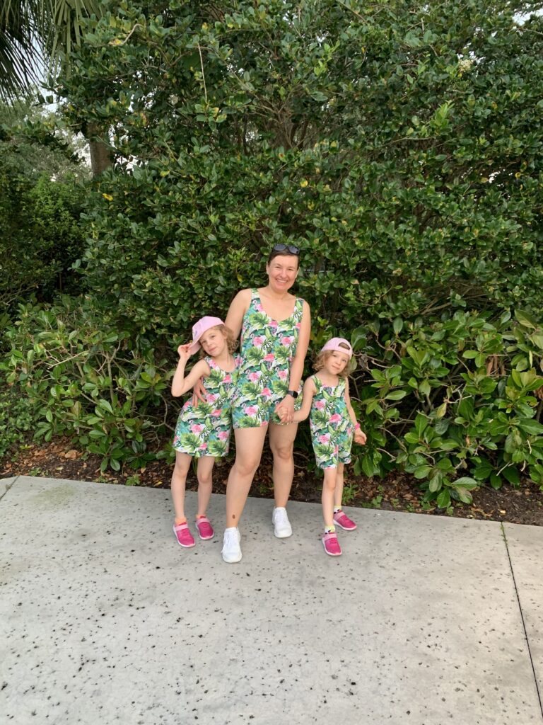 Tak jak napisałam już na Instagramie, wakacyjnym hitem okazały się rompersy. Wykrój to Nova jumpsuit i mini Nova jumpsuit (klik). Taki rompers jest super wygodny i idealnie sprawdza się na upały. Wykrój ma kilka wersji i na pewno będę jeszcze takie szyła, szczególnie w wersji z dłuższymi nogawkami. Nosiłyśmy je na urlopie na okrągło, dziewczynki tam samo lubiły je jak i ja. Za każdym razem dostawałyśmy też komplementy od przypadkowych ludzi. Dżersej we flamingi również kupiłam w fabricshop.pl (klik). Rompersy prałam już z pięć razy i materiał jest dalej w fantastycznej formie.