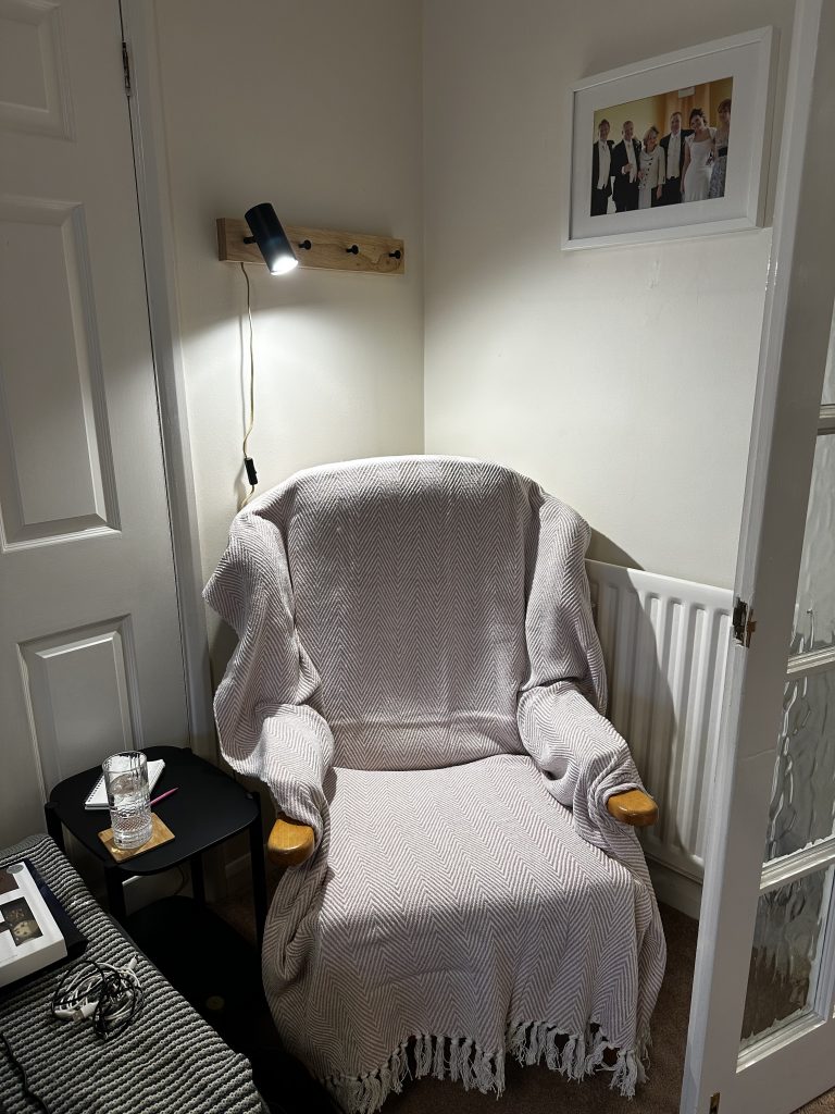 Miejscówka fachowa przy kaloryferze. Wiesz, ja zauważam że brytyjskie budownictwo jest nie zawsze ciekawe. Nasz dom jest tzw. self-built ale zastanawiam się czy część udogodnień była zaplanowana świadomie, ha ha. Fakt że zmieniliśmy sporo.