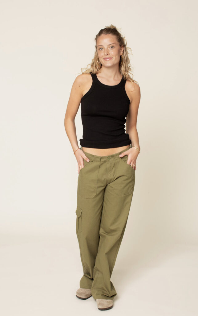 A z dość grubej bawełny z domieszką streczu w kolorze musztardowym powstaną bojówki: