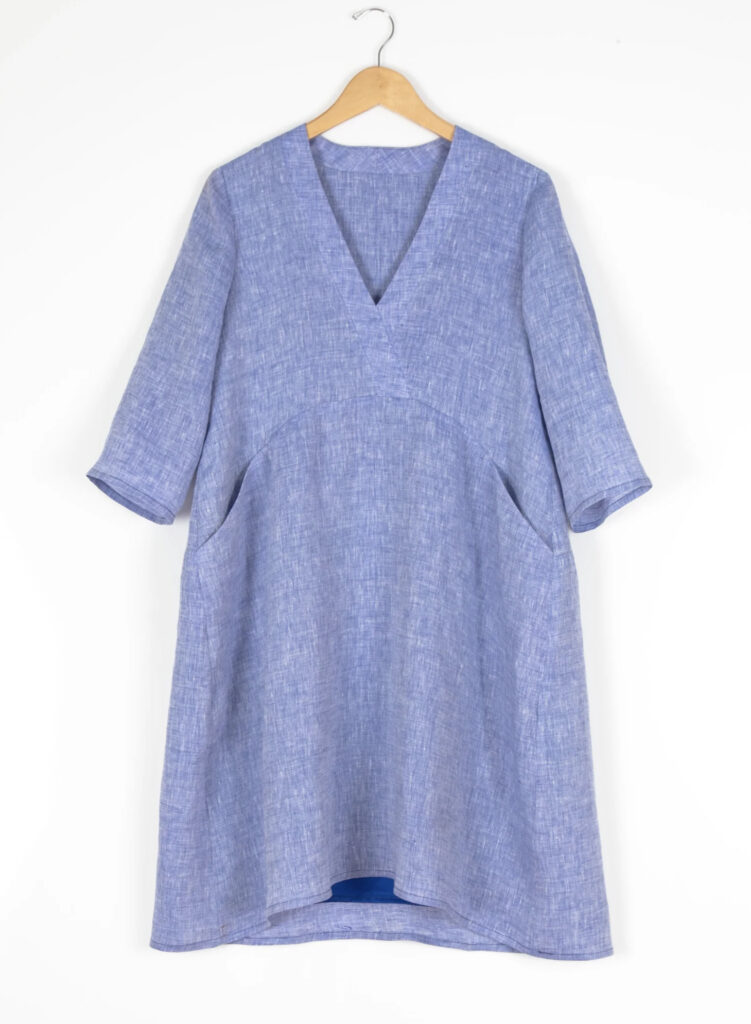 Z szarego polskiego lnu (plus bawełniana podszewka) powstanie Felix dress, ale jeszcze nie zdecydowałam czy będzie to wersja z rękawami czy jednak bez: