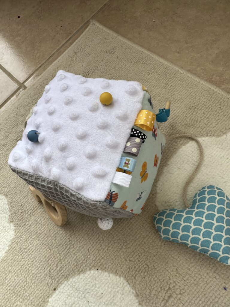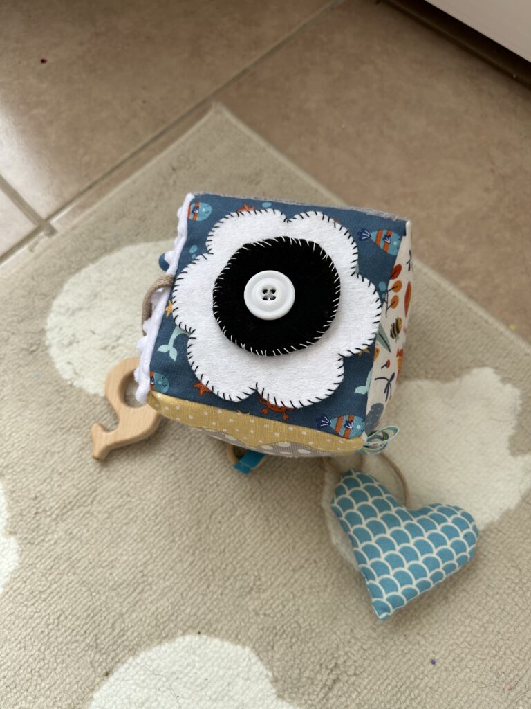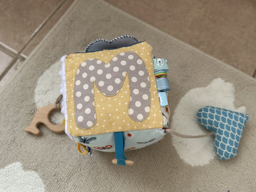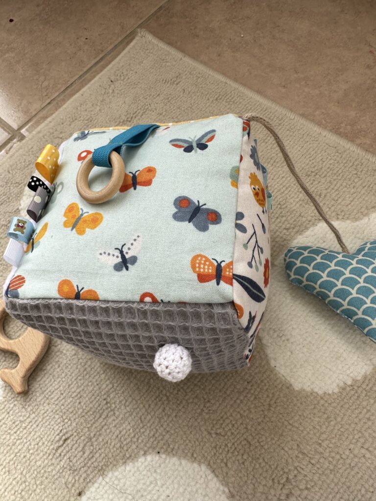 Po bardzo intensywnym czasie w pracy wracam do prac ręcznych. Przed wyjazdem mamy zrobiłam kolejną kostkę sensoryczną dla bobasa. Tym razem to prezent dla Marcysi, najmłodszej latorośli w rodzinie. Mama zabrała ją ze sobą.