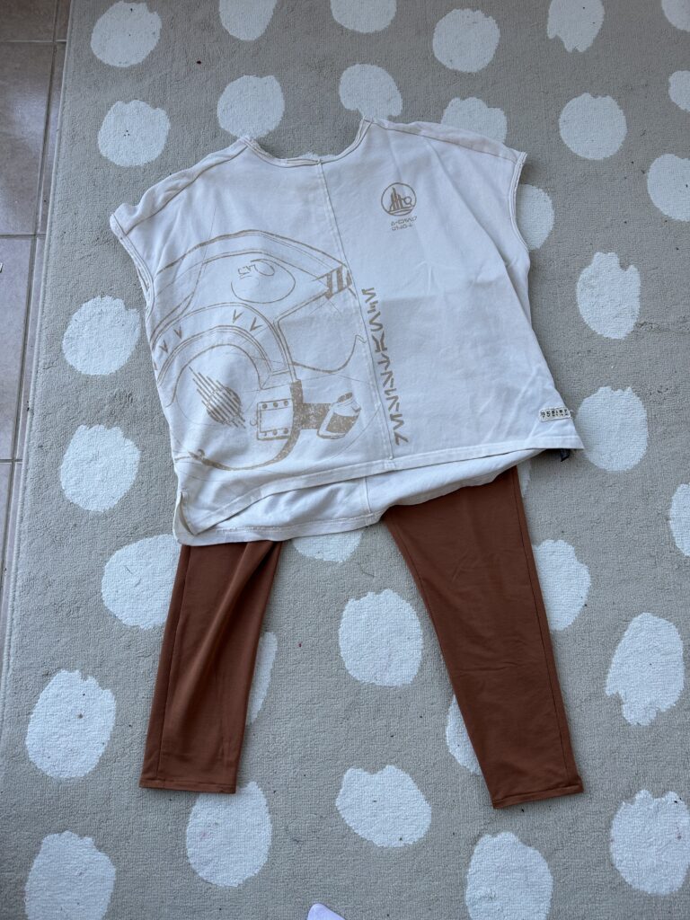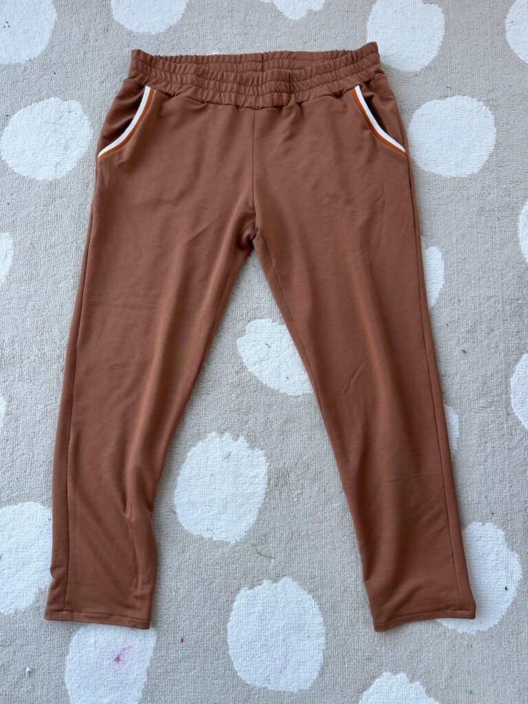 Wszystkie materiałki, jak i wykroje mam w stasiu już bardzo długo i nareszcie mam czas aby się za to zabrać. Na rozgrzewkę machnęłam w sobotę kolejne Hudsony do noszenia po domu. Tym razem w kolorze koniaku, który bardzo ładnie komponuje się z moją tuniką ‘Gwiezdne Wojny’, którą przywiozłam ze Stanów.