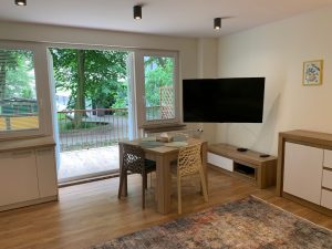 Większy niż przeciętny (54 metry plus taras 10 metrów) apartament znajdujący się na skraju pięknego Parku Zdrojowego w cichej i zielonej okolicy okolicy Świnoujścia.