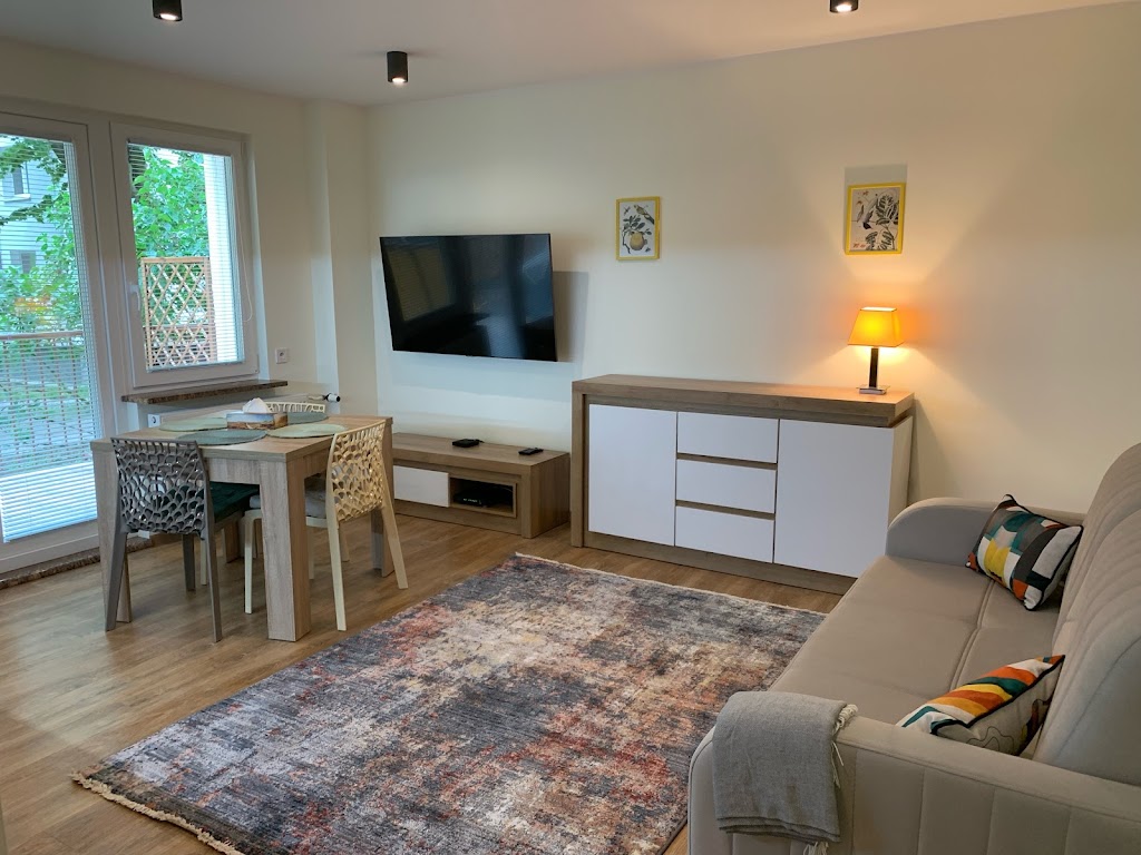 Apartament ma doskonałą lokalizację, gdzie można naprawdę odpocząć od turystycznego zgiełku i hałasu promenady ale niedaleko od plaży oraz centrum miasta. W pobliżu znajduje się ‘osiedlowy’ sklep ‘u Jana’ a niedaleko jest Lidl i Biedronka. Park Zdrojowy to fantastyczne miejsce na spacery, bieganie czy rower.