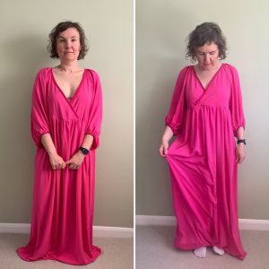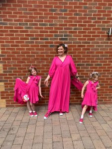 No dokładnie, a nie mogę uwierzyć, że wg tabeli to byłam już w górnej granicy tego rozmiaru po lewej. Miałam materiał a zależało mi abyśmy miały sukienki z tego samego także szyłam dwa razy,