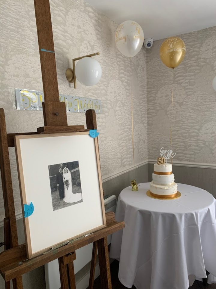Naprawdę nie mogłam doczekać. Przełożona z zeszłego roku, 50+1 rocznica ślubu moich teściów. Szyłam sukienki, piekłam tort, organizowałam sztalugi itd. Zaproszonych było około 50 osób, rodzina i przyjaciele. Z większością gości nie widzieliśmy się od ponad dwóch lat. Jak się można domyśleć było fantastycznie!!!! Wszyscy stęsknieni, mnóstwo do nadrobienia, no może okazało się, że niektórym głowa nieco osłabła podczas pandemii ale udajmy, że tego nie widzieliśmy.