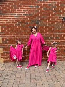 Cyklamen to jeden z najmodniejszych kolorów tego sezonu więc nie miałam żadnego problemu aby skompletować dodatki, w tym trzy pary identycznych trampek (które pachniały truskawkami).
