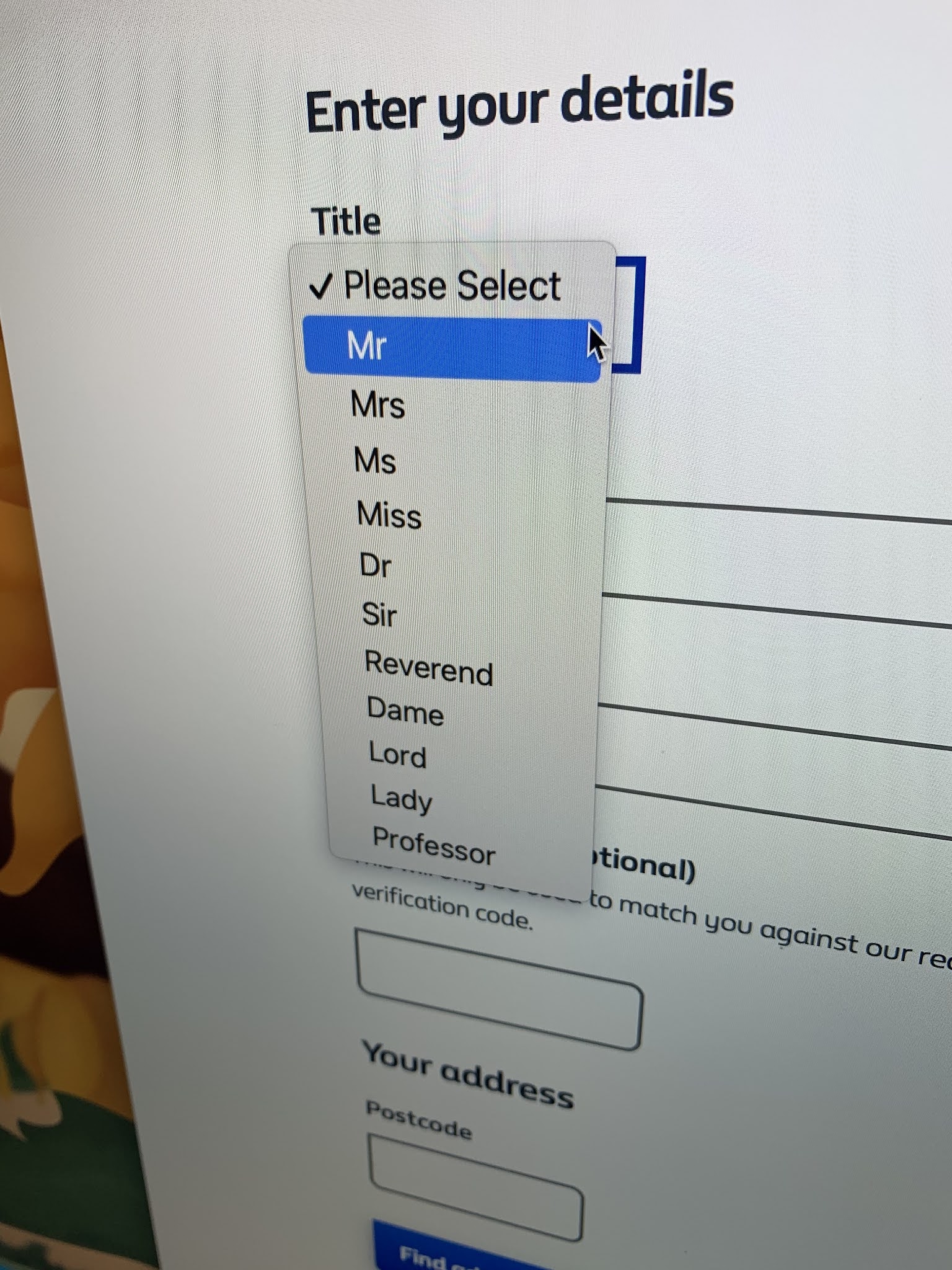 To na przykład formularz aby założyć nowe konto w British Gas (czyli jednego z wielu dostawcy mediów do gospodarstw domowych). Kiedy realizujemy receptę to na każdym leku farmaceuta przykleja naklejkę aby było wiadomo do kogo należy lek. Tam też mam doktora a na przykład kuzyn Pimposhek ma ‘Master H. Turner.’ czyli… Panicz.