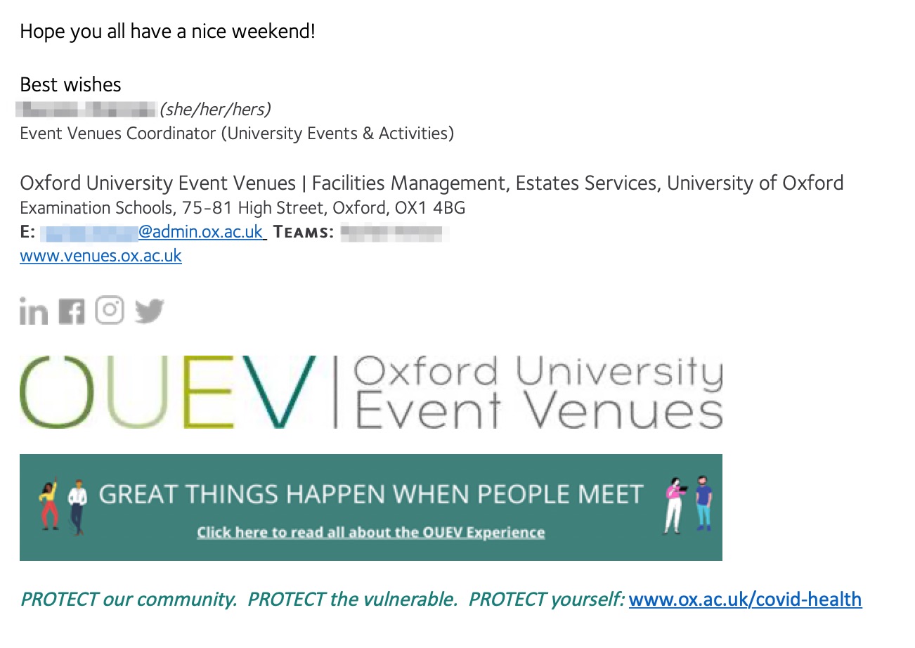 Dygresja: Chociaż z tymi feminatywami to teraz dzieje się osobna historia. Ponieważ coraz więcej osób nie identyfikuje się tylko z jedną płcią, u mnie w pracy coraz więcej emaili jest podpisanych she/her (oznacza to, że osoba identyfikuje się jako kobieta), he/him (identyfikuje się jako mężczyzna) albo they/them co oznacza, że nie identyfikuje się z żadną płcią. Podobnie słówko ‘partner’ teraz mówi się ‘my partner’ i nie wiesz, jakiej płci ten partner jest. I żeby nie być gołosłownym to tutaj jest przykład takiego podpisu w mailu: