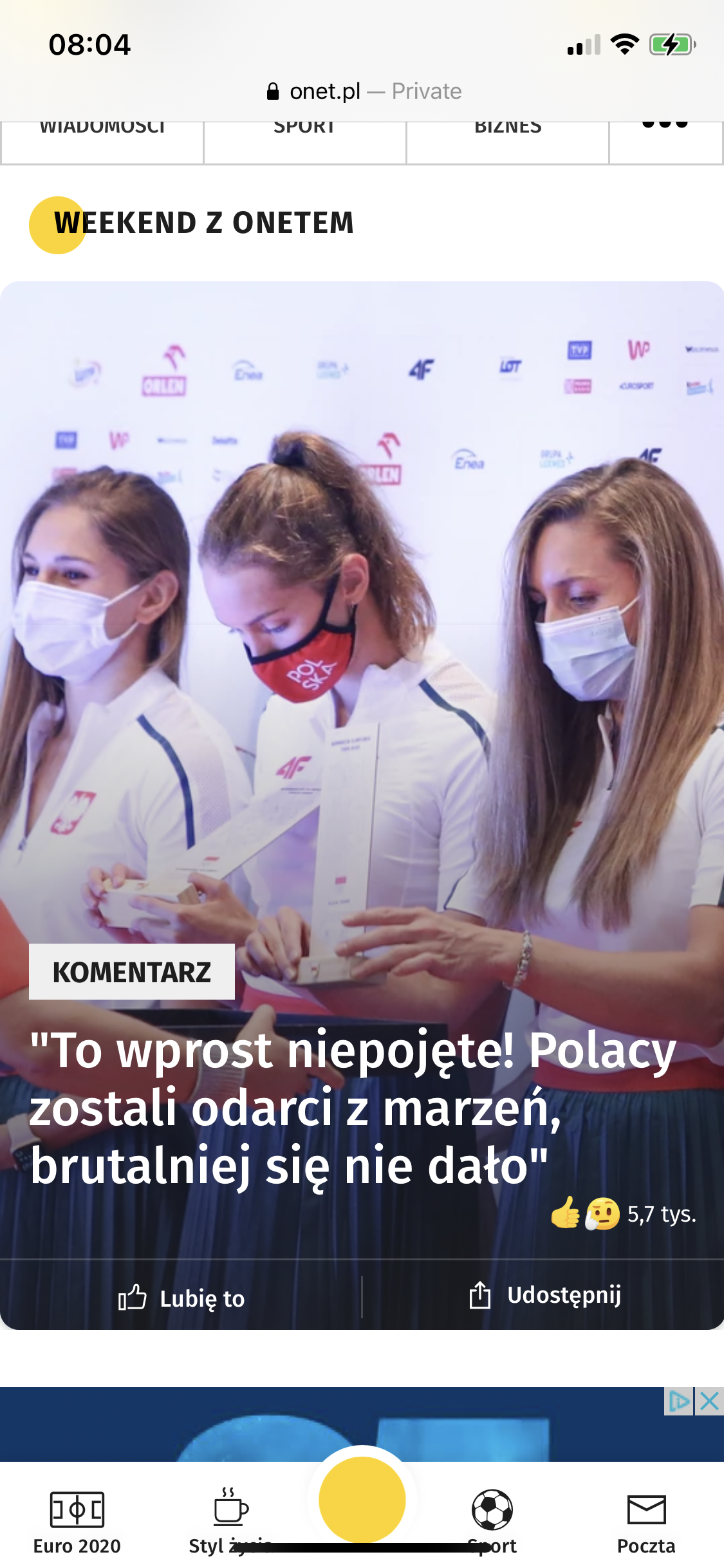 Od ponad 20 lat mąż prenumeruje w pracy Gazetę Wyborczą, i gdy przynosi ją codziennie do domu, dopadam do czytania, uwielbiam ich reportaże. Dla mnie źródłem wiarygodnych wiadomości jest TVN24 – zanim wyrobię sobie zdanie na jakiś temat, zawsze słuchm dwóch stron, dlatego czasami włączam Wiadomości czy Panoramę, i nigdy TVP mnie do niczego nie przekonało. W internecie czytam wiadomości w Gazeta.pl i poza tym już nigdzie. Z przyczyn o których piszesz unikam Onetu – np. raz widzę tytuł – "W PnŚ Kasi Cichopek przytrafiła się tragedia", kliknęłam i pożałowałam – Kasia wzięła szczeniaczka na ręce i ją obsikał! Żenada. To jak nazwą zdarzenie gdy np. żywioł zabija setki ludzi, bo słowa "tragedia" używają do opisania zabawnej sytuacji? No i te literówki, błędy merytoryczne, aż trudno uwierzyć że to piszą wykształceni dziennikarze. Kiedyś psycholog mówił, że to, czy chcemy się zaszczepić czy nie, zależy od tego, co czytamy w internecie, i to się zgadza z moimi obserwacjami wśród znajomych i sąsiadów. Życzę rychłej przeprowadzki.