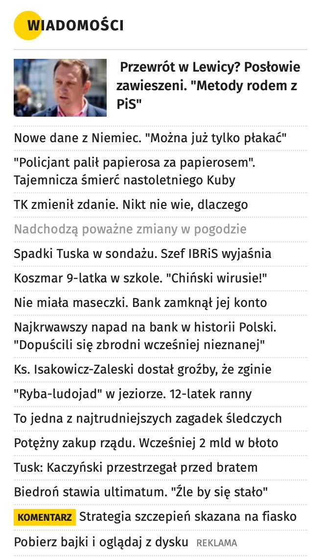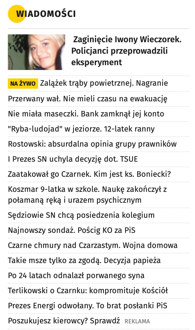 Niestety nie wiem, czy jest jakiś rzetelny serwis informacyjny w Polsce, w końcu wszystkie media walczą o czytelników i nie potrafią inaczej jak coraz bardziej agresywnymi klikbajtowymi tytułami, a treści w artykułach niewiele albo jest zmanipulowana. Rzadko czytam takie serwisy, nie mam na to czasu i nerwów.