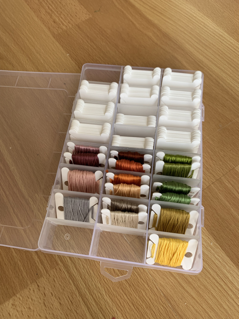 Fajne prawda? Jestem nimi totalnie oczarowana. Wzór na literki kupiłam tutaj (klik) ale szablony powiększyłam razy 1.5 (literki i tak są dość małe) a filc kupiłam tutaj (klik). To jest bardzo wdzięczny projekt bo wszystko robi się ręcznie, nie trzeba mieć dużo miejsca, nie trzeba maszyny ani innego specjalistycznego sprzętu. Fajnie się to dziubie przed telewizorem. Po skończeniu okazało się, że mam całkiem sporo muliny i nie za bardzo mam jak ją przechowywać więc na Amazonie zakupiłam takie chińskie pudełko: