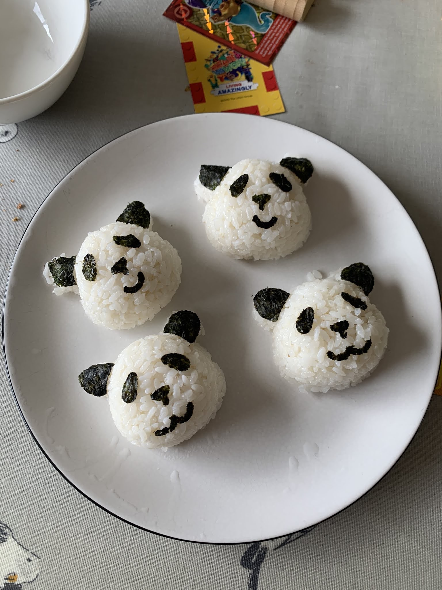 A tutaj pandy, które zrobiłam dla starszej P. z ryżu do sushi.