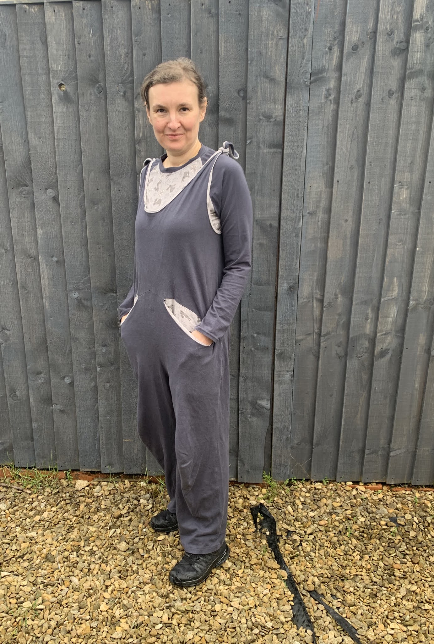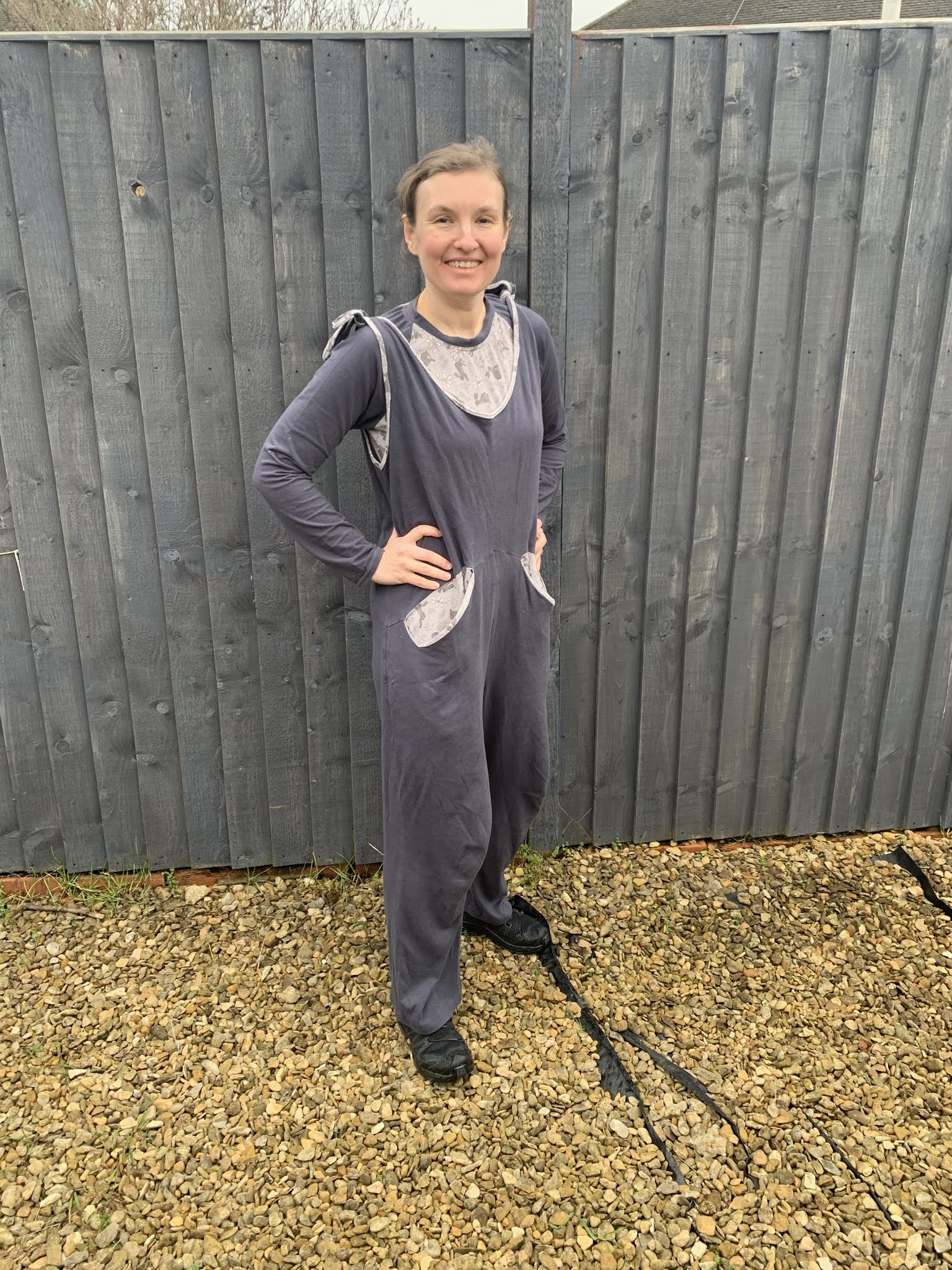 We wrześniu pokazywałam Wam kombinezon ‘po domu’ z dżerseju interlock (klik). Jak zrobiło się chłodniej to uszyłam jeszcze koszulkę z długim rękawem do kompletu. Koszulka jest z tego samego wykroju co szara koszulka w ciapki (klik). A całość wygląda tak: