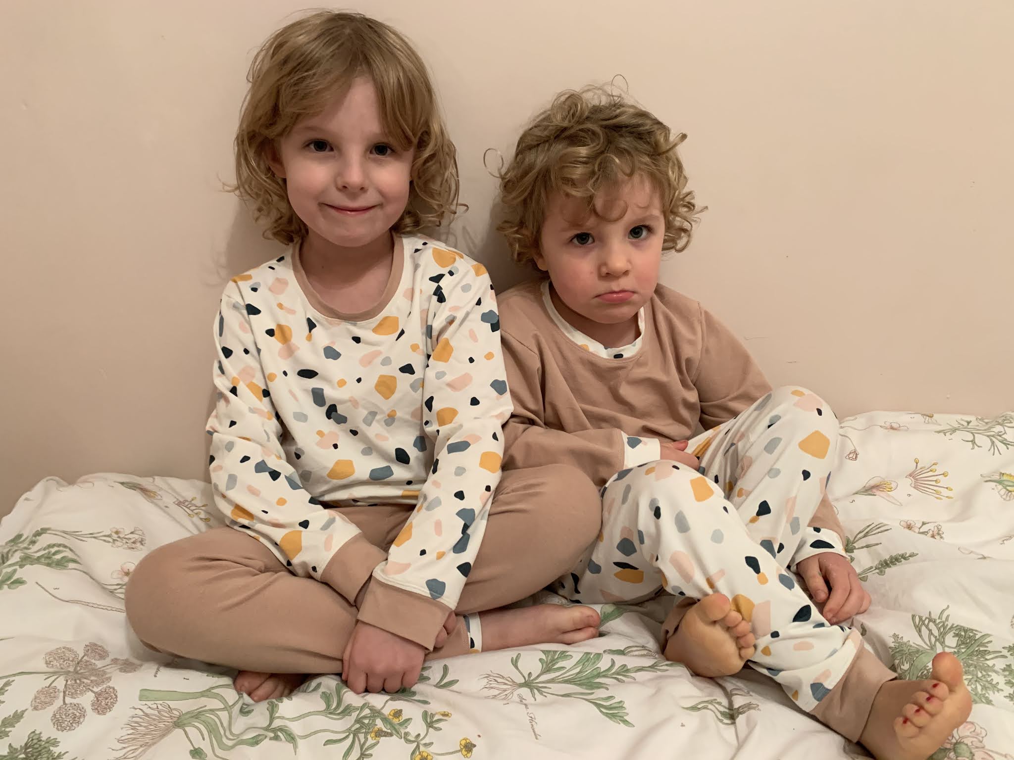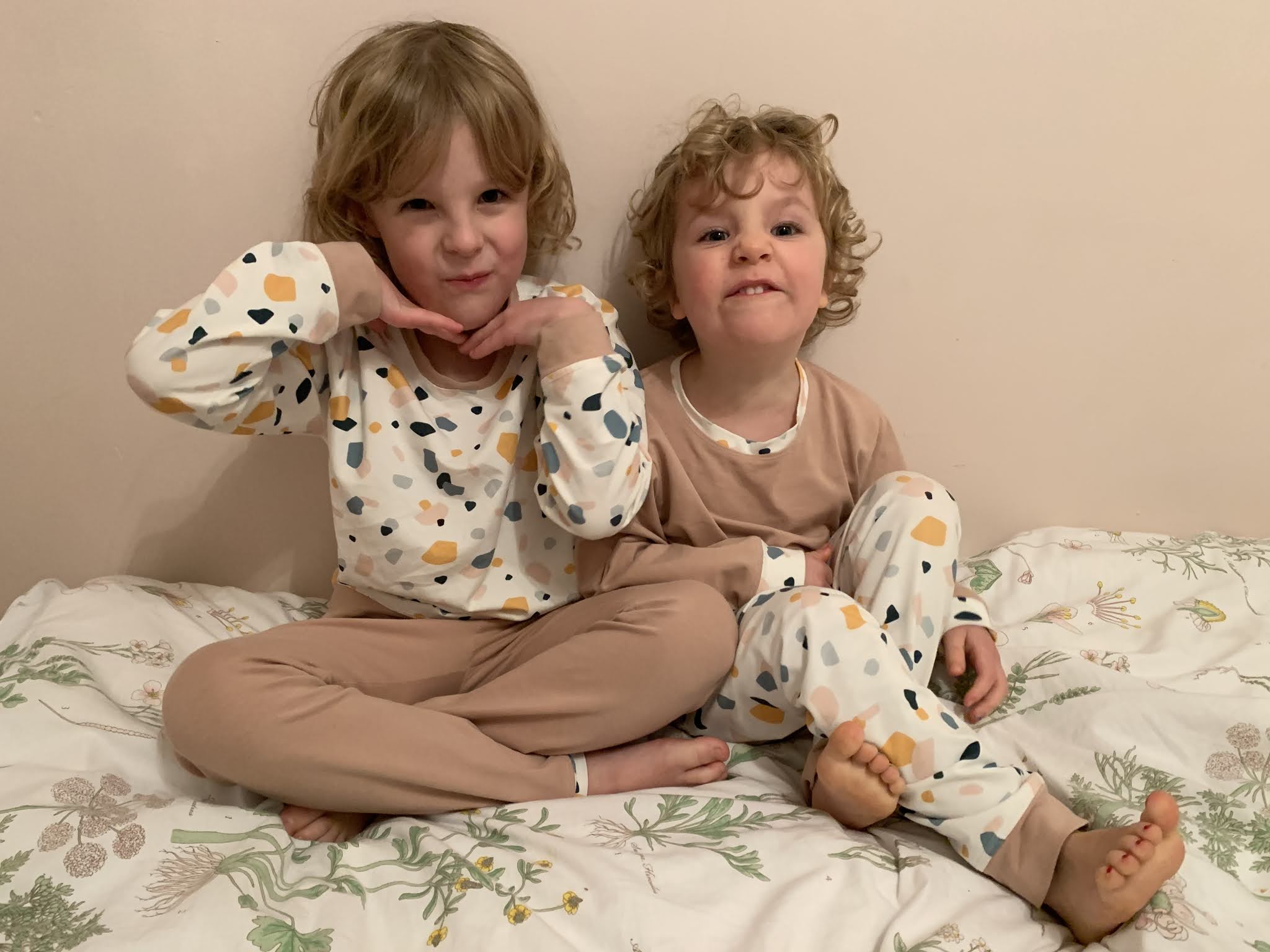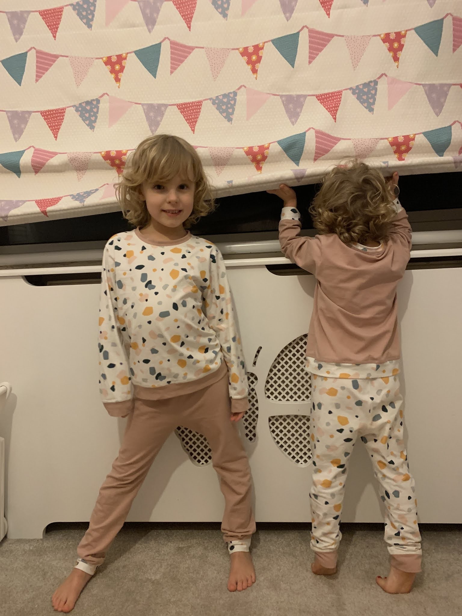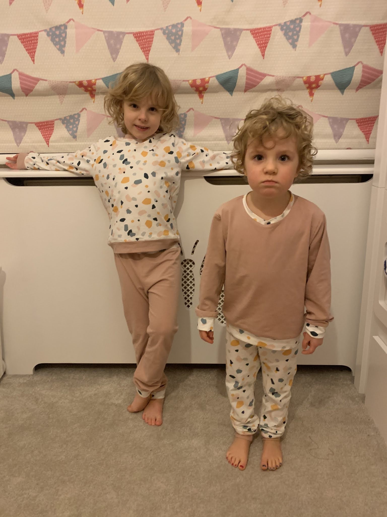 Zacznę chronologicznie od piżamek dla dziewczynek, które uszyłam pod koniec…. października. Nawet nie wiem jak to się stało, że nie trafiły nawet na Instagrama. Uszyłam je z dżerseju kupionego w sklepie olabela.pl, wzór na piżamki również pochodzi stamtąd.