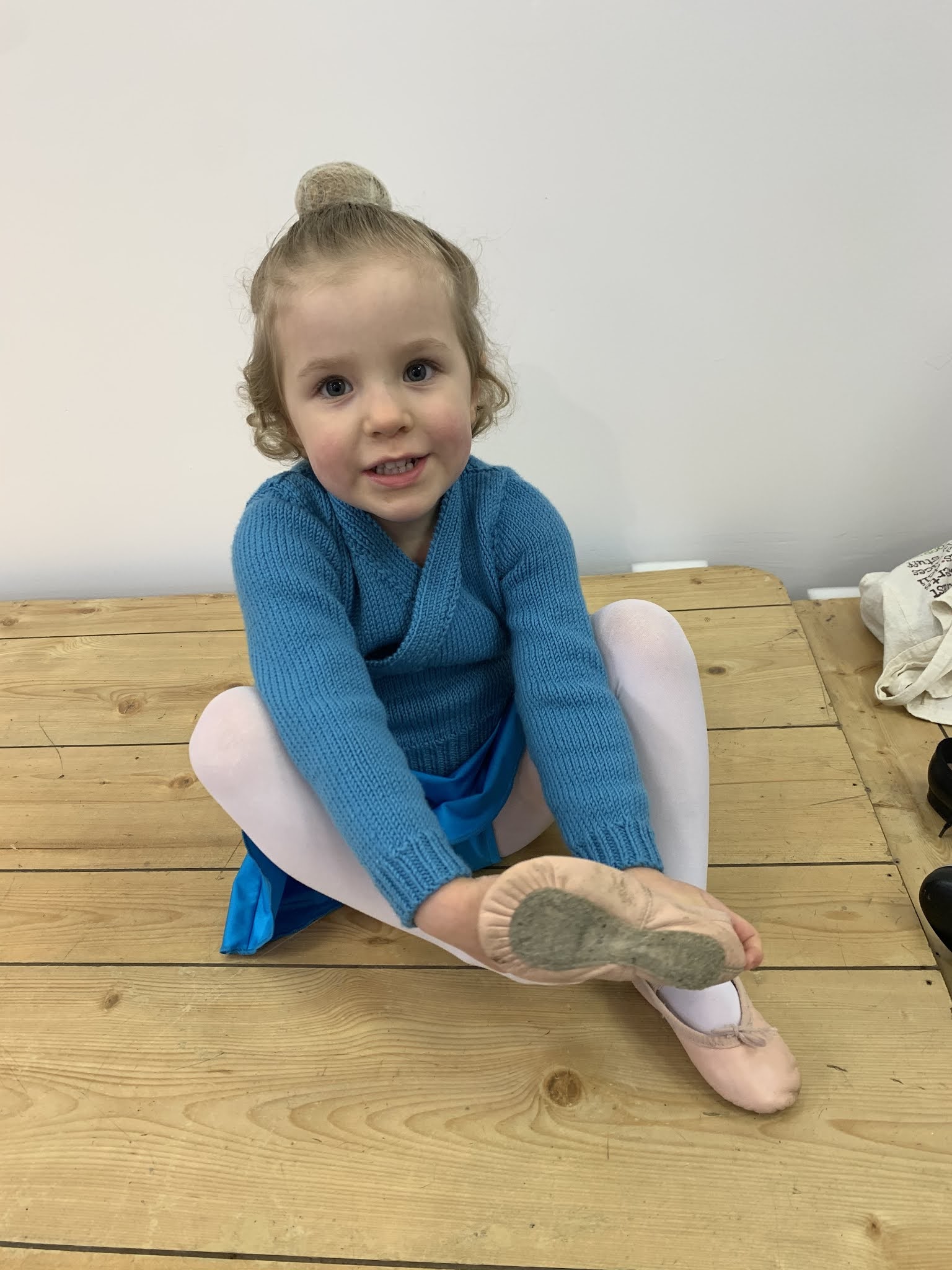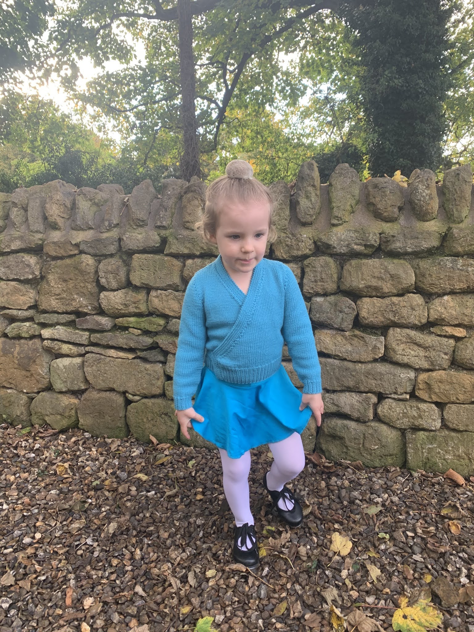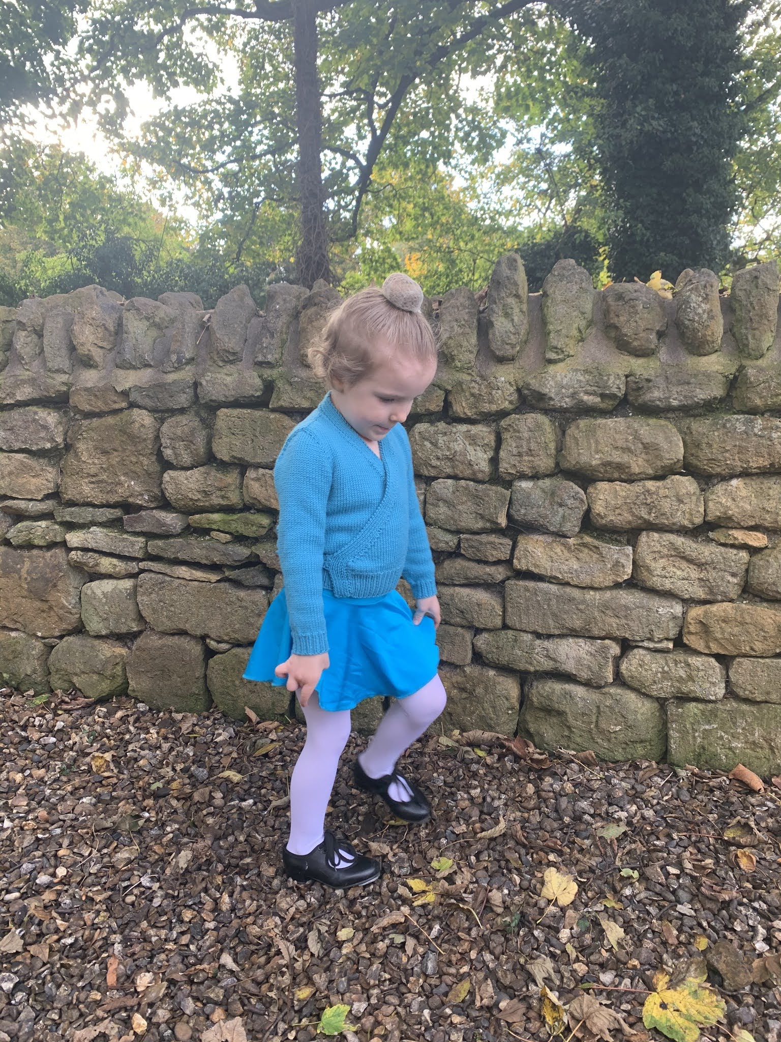 Takie dziewczynki w baletkach – jakie słodkie! Fajnie, że się uczą tańca, a już sweterek ma najprześliczniejszy ze wszystkich 🙂