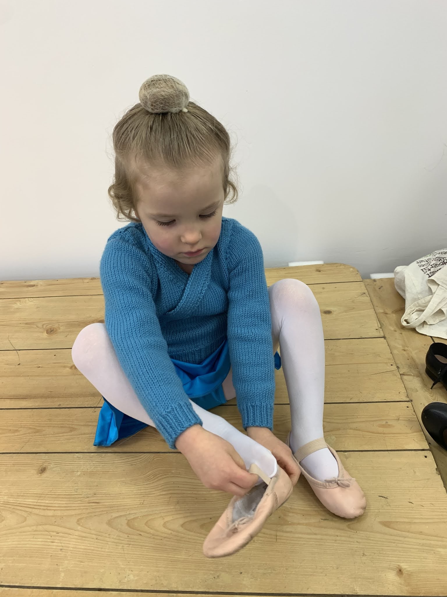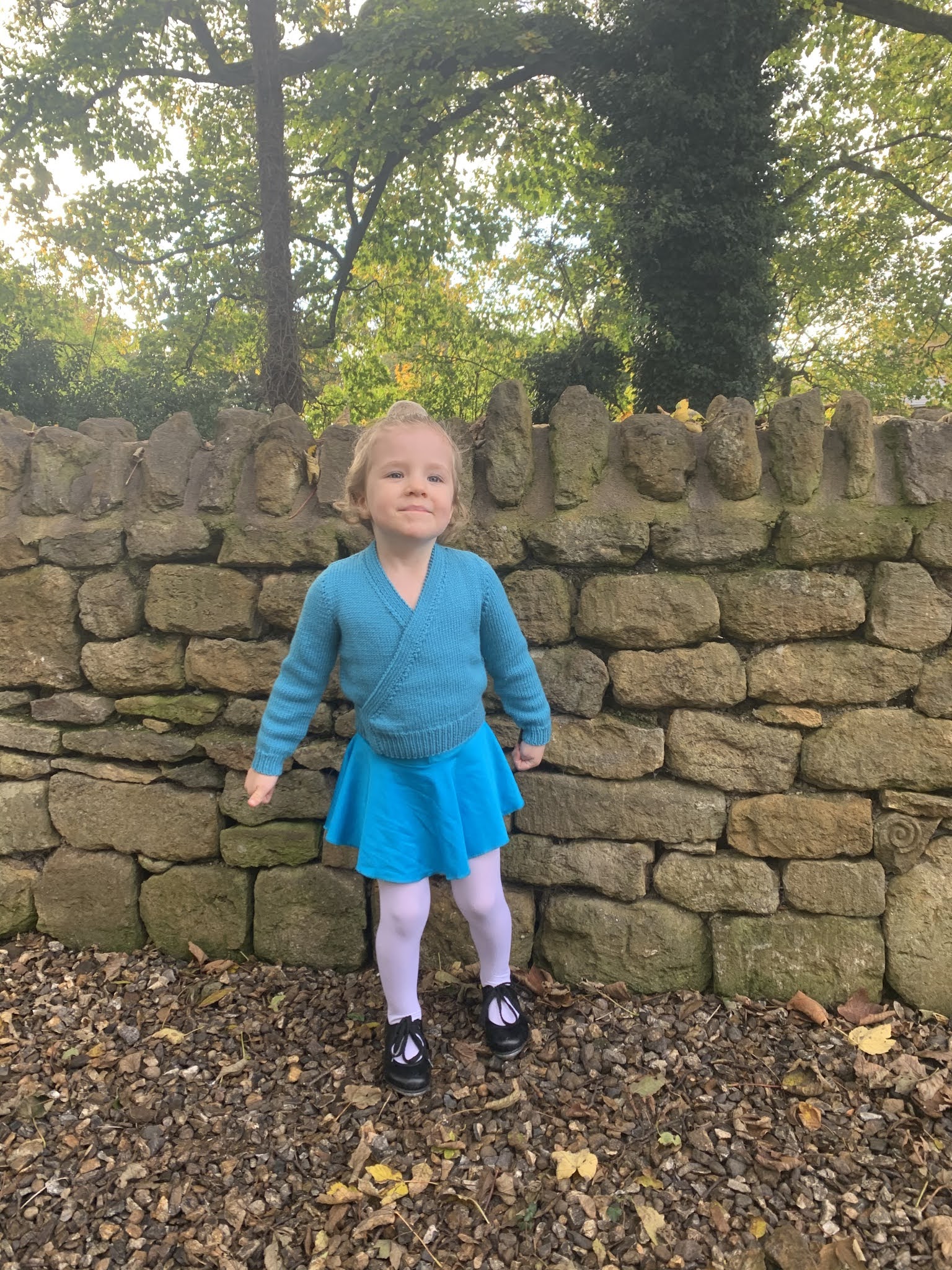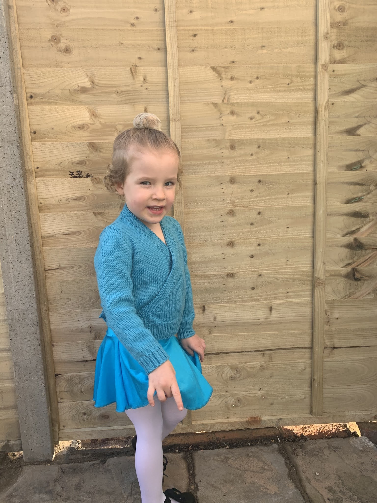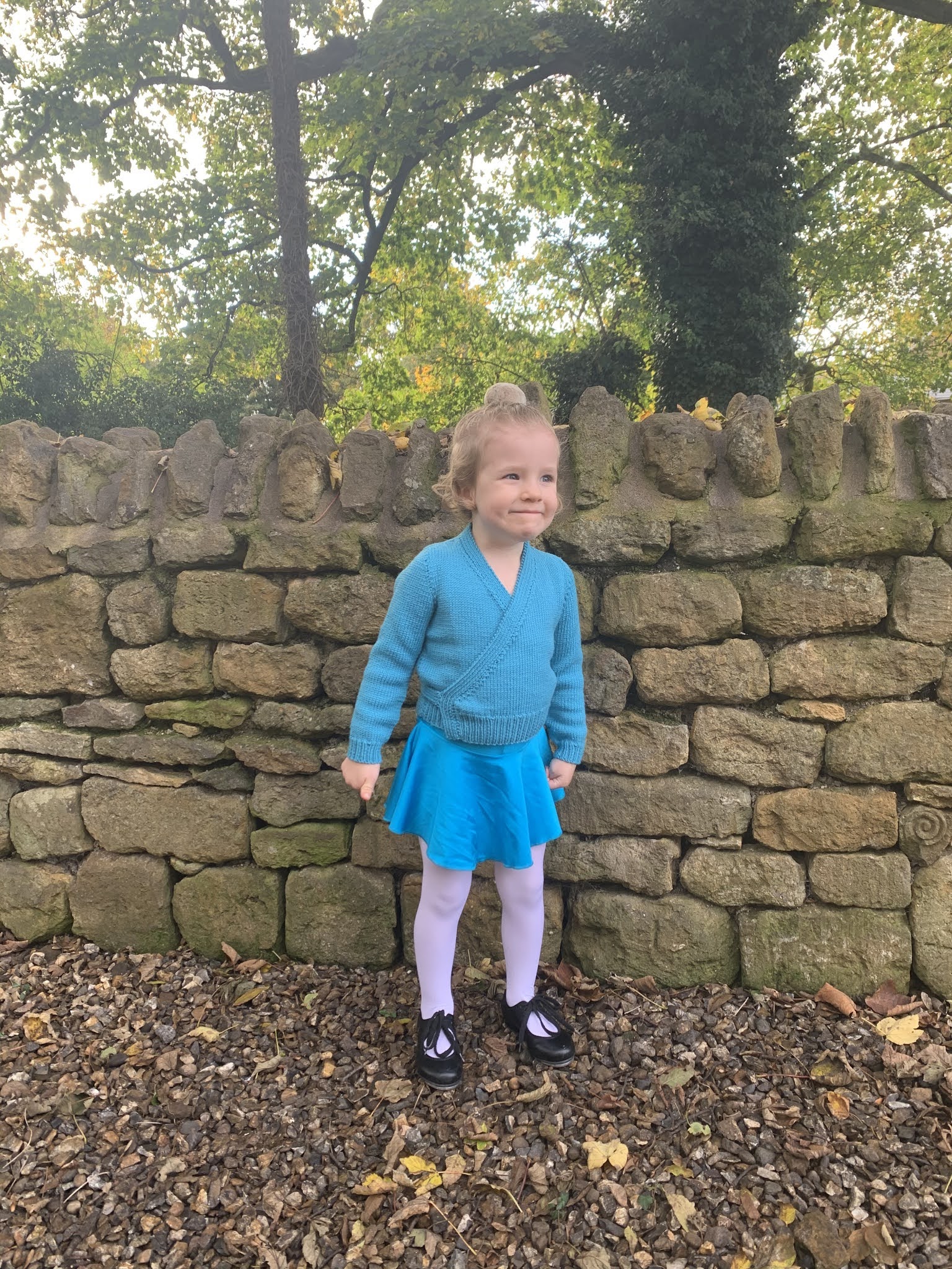 Takie dziewczynki w baletkach – jakie słodkie! Fajnie, że się uczą tańca, a już sweterek ma najprześliczniejszy ze wszystkich 🙂