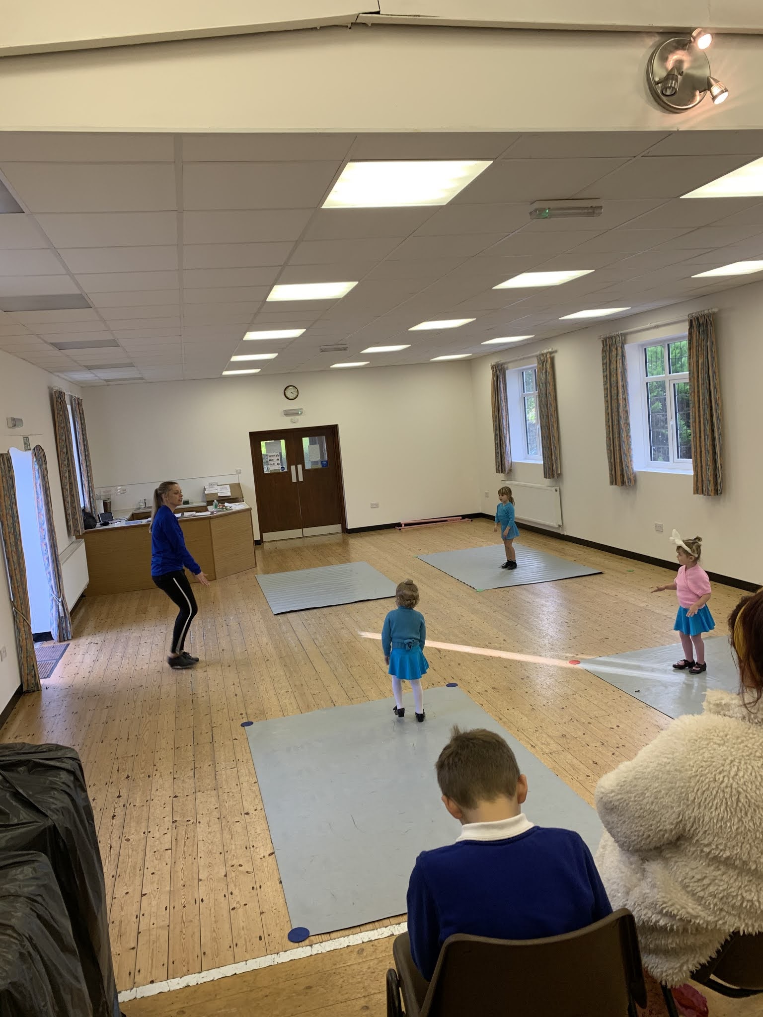 A tak wyglądają zajęcia z tańca w nowej rzeczywistości. Zwróćcie uwagę, że wszystkie baletnice mają sweterki. Ten różowy na moje oko (z odległości dwóch metrów) jest też robiony ręcznie ale z jakiegoś koszmarnego akrylu i w dodatku śmiem uważać, że mój pasuje na moją baletnicę znacznie lepiej :). Trzecia dziewczynka na zdjęciu ma sweterek kupny, niezbyt grzejący.