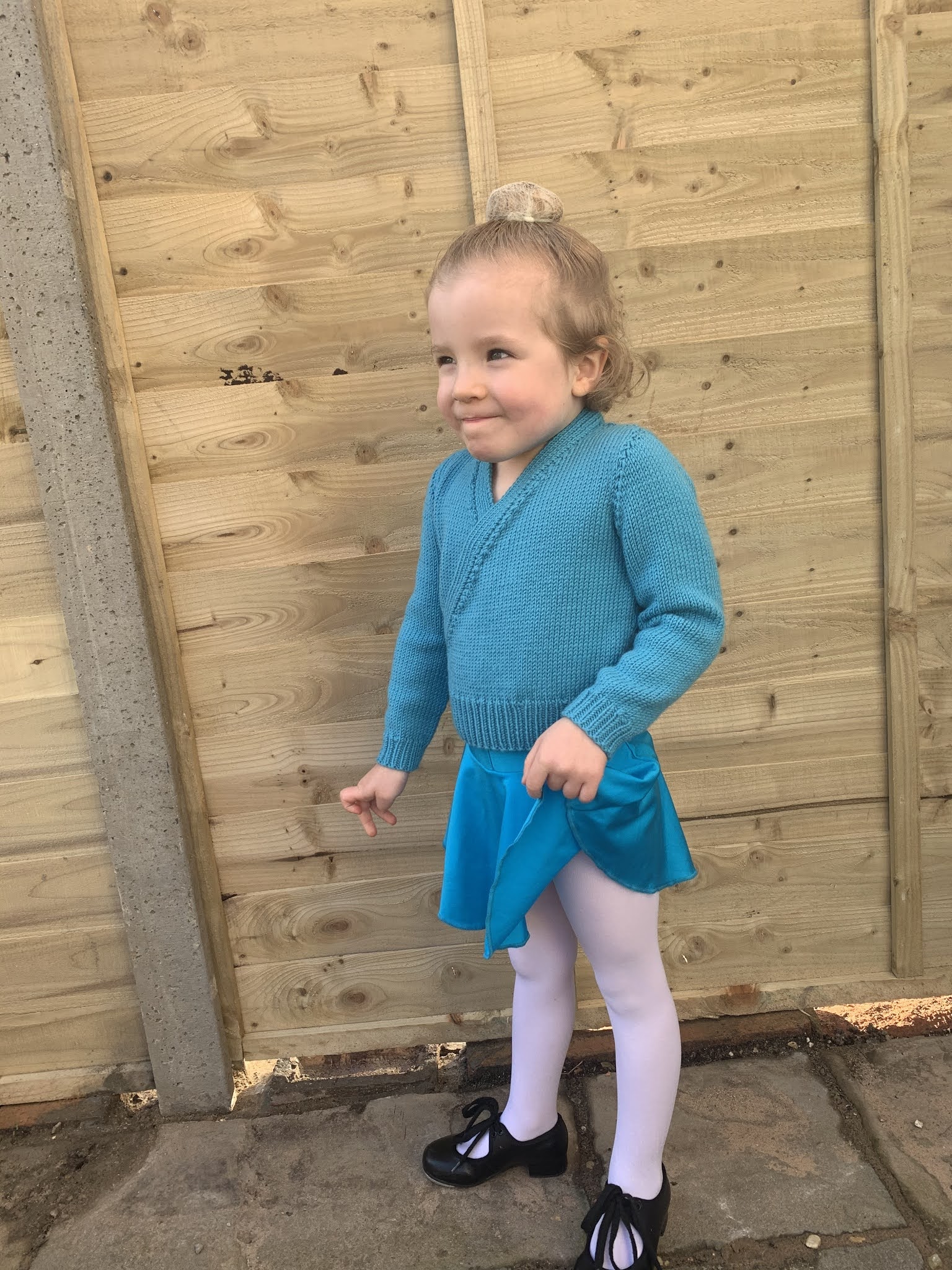 Otóż we wrześniu małe Pimposhki ponownie zaczęły zajęcia z tańca. W ramach nowej rzeczywistości tańce odbywają się w mocno wietrzonej sali więc powstała potrzeba jakiegoś ciepłego sweterka. Najpierw chciałam coś uszyć ale nie mogłam znaleźć materiału, który by mnie satysfakcjonował. Wszystko co by się w miarę nadawało miało fatalny skład i na pewno by nie grzało. Pozostało mi wydziergać sweterki na drutach!
