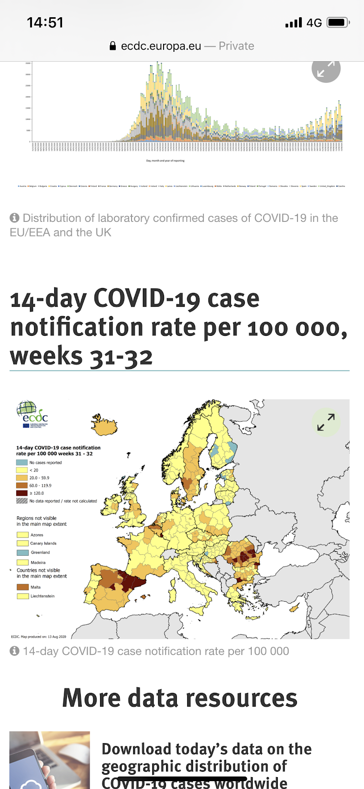 Korona jako tako nie dawała się nam we znaki poza moją obsesją codziennego sprawdzania wszelkich statystyk. Najważniejsze było czy będziemy musieli poddać się kwarantannie po powrocie. Rząd w Wielkiej Brytanii w czwartki aktualizuje ‘czarną listę’. Obserwowałam więc europejską mapę koronawstydu. Jak wyjeżdżaliśmy to Europa wyglądała tak: