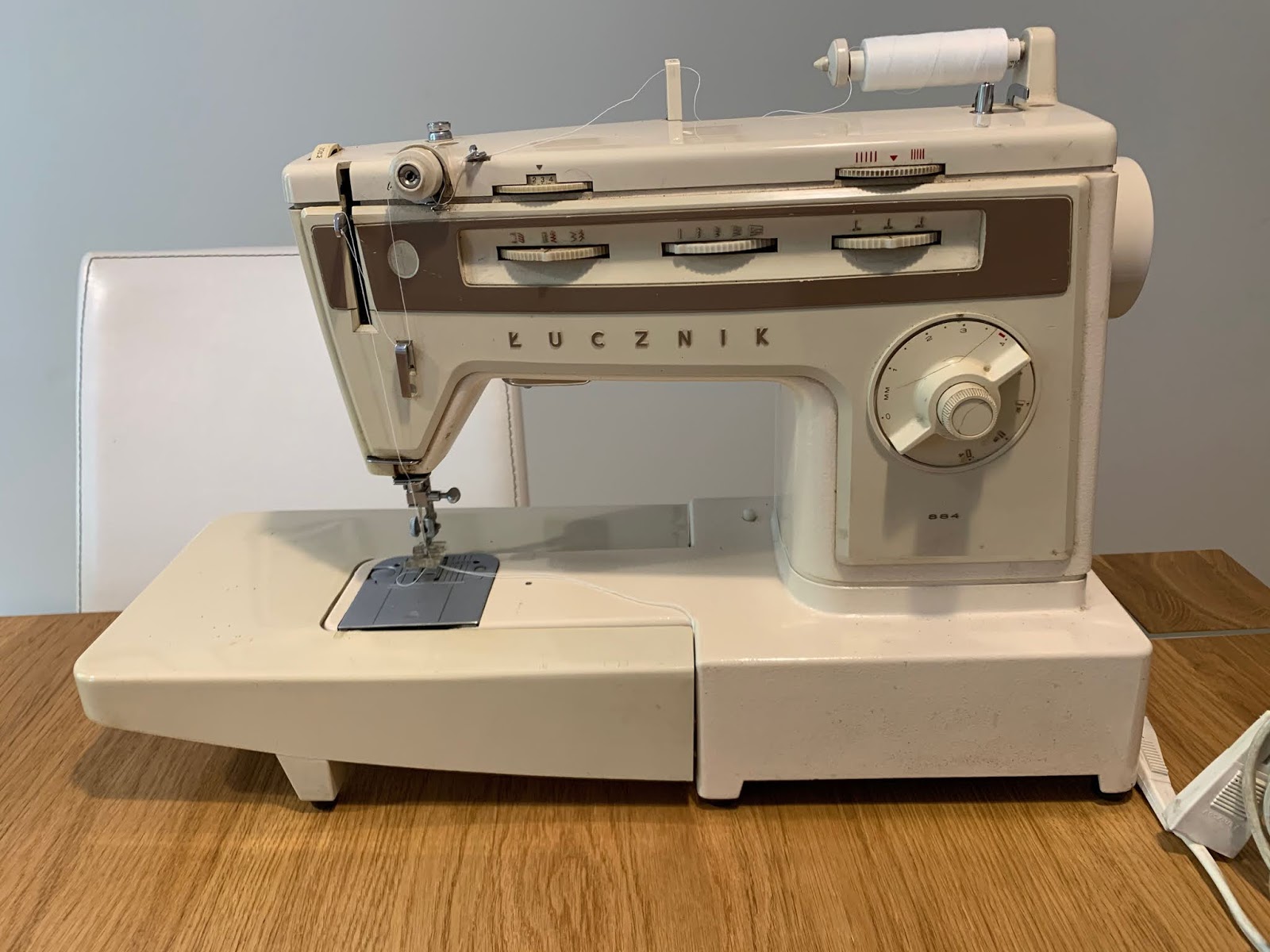 A to jest maszyna mojej mamy. Ten sam Łucznik, który pamiętam z dzieciństwa. Jest w bardzo dobrej formie, nasmarowany, pięknie chodzi i mama właśnie szyje na nim nowe zasłony. Jestem pewna, że trafi on kiedyś do mnie :). Pan Kapitan zrobił zdjęcie a mama wyraziła zgodę na publikację. Powiedziała też, że mam bardzo fajne czytelniczki. 🙂