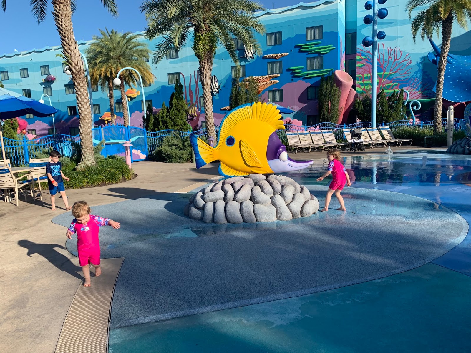 Przed naszym blokiem był mały basen ale prawdziwą gwiazdą był basen przy blokach w scenerii ‘Szukając Nemo’. To podobno najlepszy basen we wszystkich hotelach na terenie Disney.