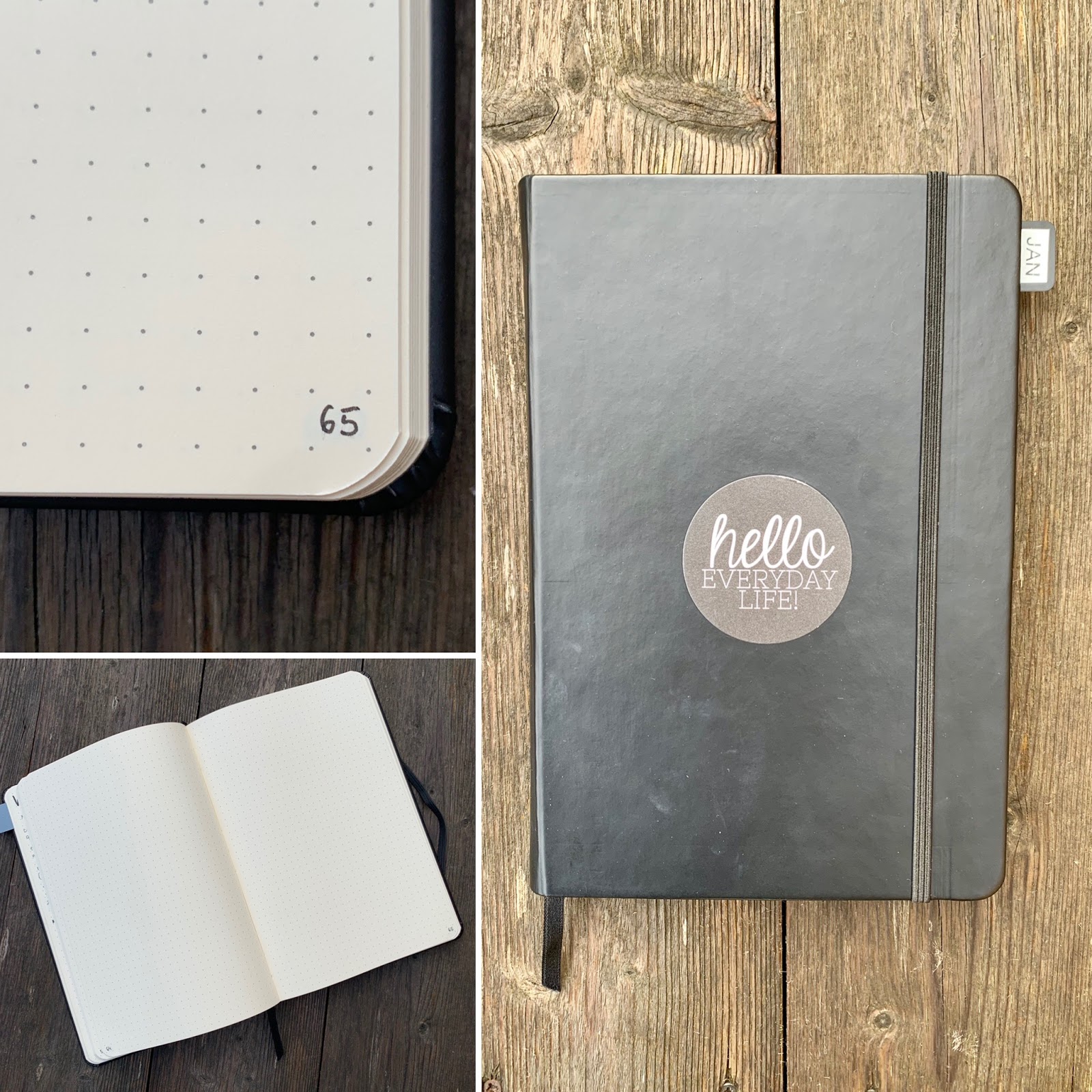 To jakby ‘oficjalny’ notatnik metody Bullet Journal. W notatniku znajduje się legenda z symbolami używanymi w tej metodzie, jest też osoby index. Notes ma bardzo dobry papier, kropkowany oczywiście a strony są numerowane. Ma aż trzy tasiemkowe zakładki i kieszonkę z tyłu. W zasadzie nie ma wad być może poza małym wyborem koloru okładek.