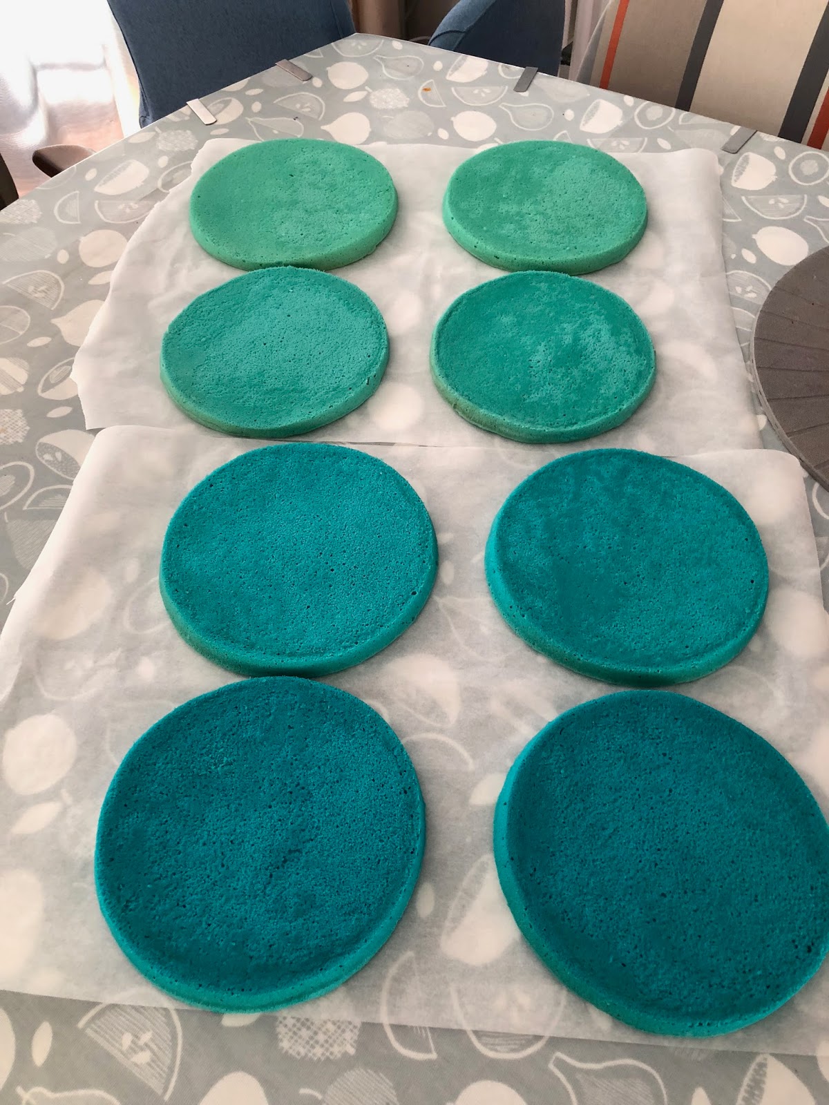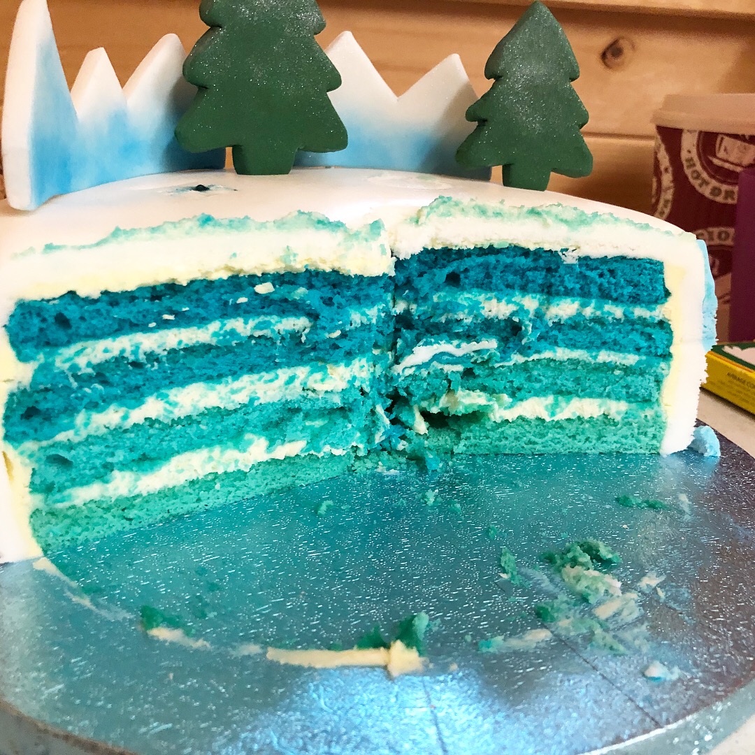 Na kolejny tort musiałam jednak czekać aż do Grudnia, kiedy nadeszły trzecie urodziny starszej P. Starsza P. jak na fankę Krainy Lodu przystało zażyczyła sobie tort z Elsą no i miał być w jej ulubionym kolorze, czyli niebiskim. Po remoncie kuchni mamy nowy piekarnik i okazało się, że wcale taka zła w tym pieczeniu nie jestem. A tort z Yodą był tak dobrze przyjęty, że zyskałam sporo pewności siebie. Do sprawy podeszłam ambitnie, chciałam aby tort był nie tylko ładny ale i smaczny. No i wymyśliłam sobie tort tęczowy.
