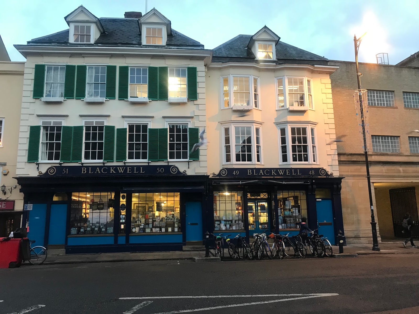 Nieco skromny front słynnej księgarni Backwell. Za nim kryją się setki kilometrów półek z książkami i piwnica godna Pentagonu również pełna książek. Mają tam nawet książkę z moim nazwiskiem ;).