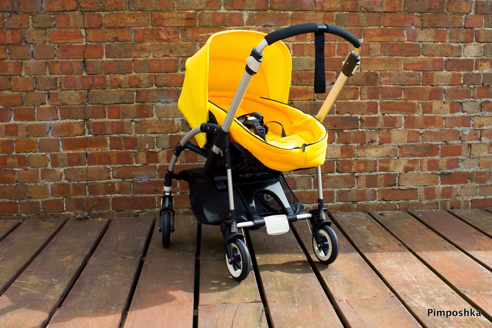 Tutaj Pszczoła w wersji w jakiej na początku będzie jej używać mała P. Tak, dobrze widzicie, nie mamy tradycyjnej gondoli, która zamienia spacerówkę w wózek głęboki pomimo, iż mała P. to zimowe dziecko. Po pierwsze gondola z tego zestawu nam się nie podobała i wcale nie sprawiała wrażenia wygodnej ani praktycznej. Po drugie w Anglii zimy są w miarę łagodne (nie to co w Polsce, gdzie przecież niedźwiadki polarne chodzą po ulicach ;). Po trzecie gondola służy tak naprawdę maksymalnie przez pół roku. Jak się okaże niezbędna do dokupimy ale wydaje mi się, że sobie doskonale poradzimy z samym śpiworkiem: