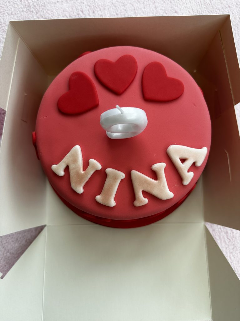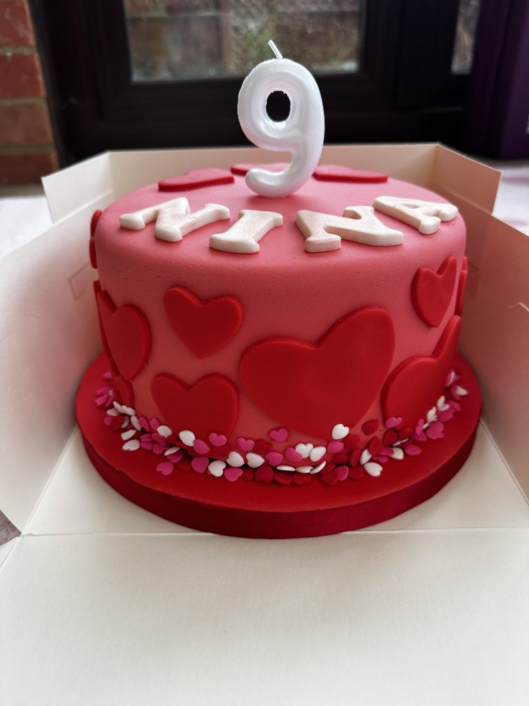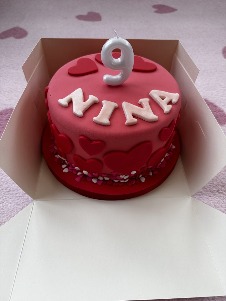 W piątek młodsza P. skończyła 9 lat! W sobotę wyprawiliśmy jej małe przyjęcie urodzinowe z koleżankami z klasy. Jak zwykle zrobiłam tort. Młodsza P. zażyczyła sobie figurki z filmu K-Pop Deamon Hunters. Oczywiście wyszłyby super, ale ponieważ chwilowo pracuję na półtora etatu, to musiałam wynegocjować zmiany. Młodsza nie chciała się zgodzić na „kreskówkowe” wersje tych postaci (dla niewtajemniczonych: film na trzy główne bohaterki), które byłyby prostsze i szybsze do zrobienia. Stanęło więc na torcie „walentynkowym”. Bez figurek, za to upieczonym w domu.
