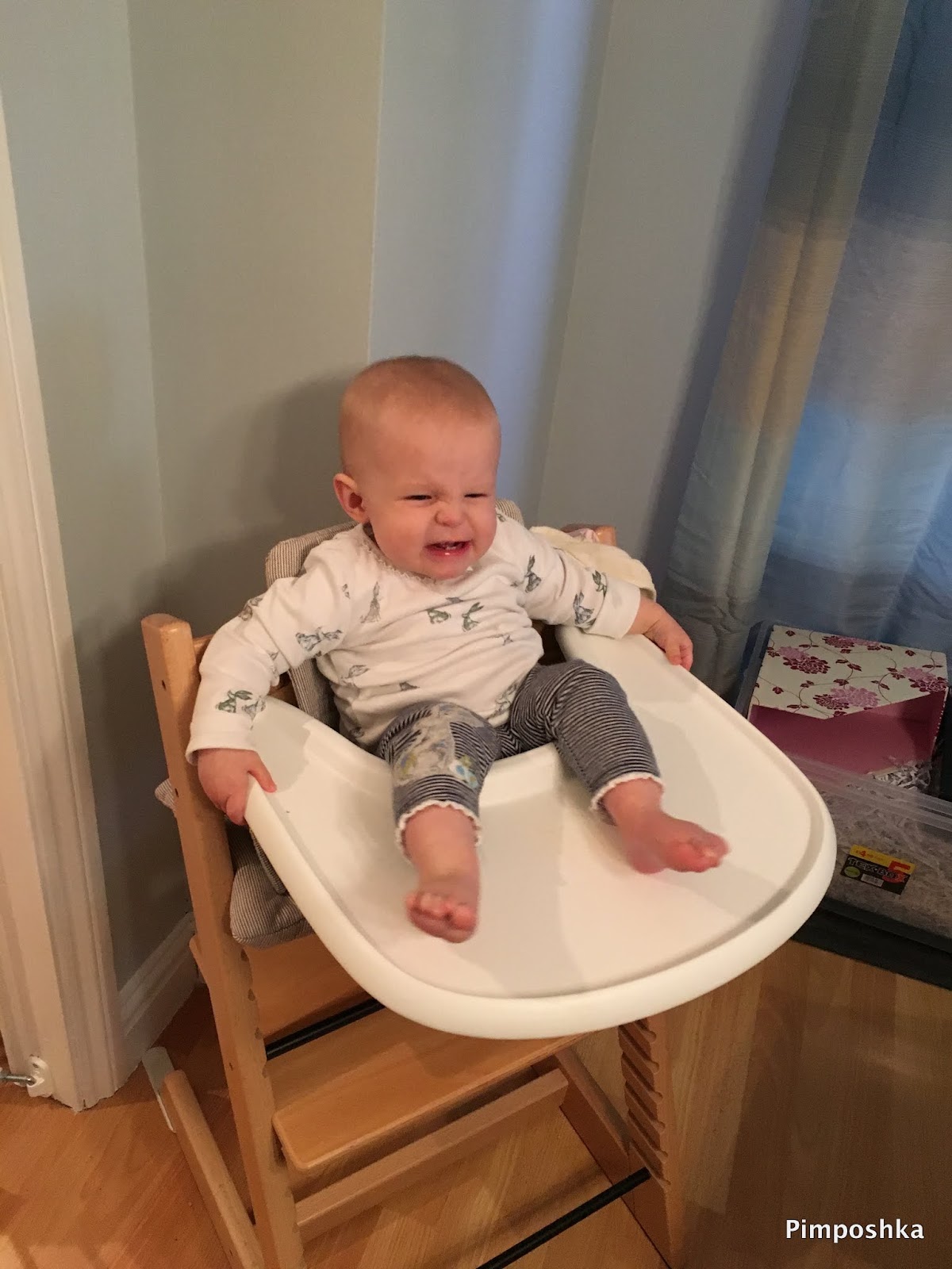 Po sześciu miesiącach nasze drogi z gniazdkiem się rozeszły a jego miejsce zajęła przystawka dla dziecka siedzącego samodzielnie: