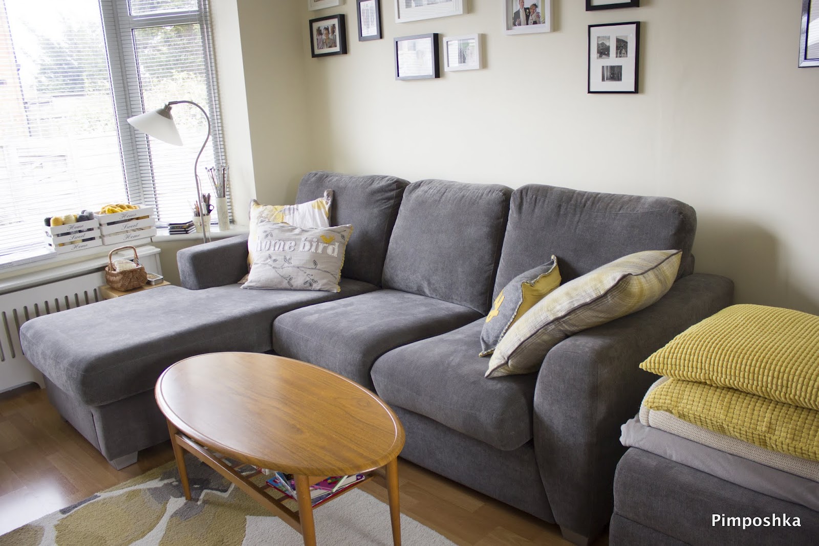bardzo udana "renowacja" salonu:) świetne kolory. uwielbiam połączenie szarości i żółtego. i jasne ściany:)