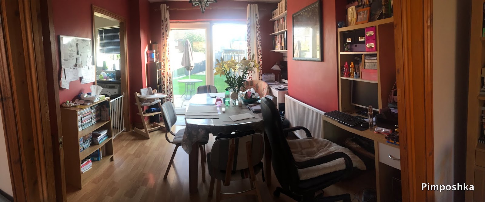 W związku z tym dzisiaj chciałam Wam pokazać zdjęcia naszej jadalni przed metamorfozą. Jadalnia i salon są u nas połączone i będziemy je przerabiać w tym samym czasie. Szykujemy się więc na jeden wielki bałagan. Nawet córkę na dwa dni odsyłamy do szkoły z internatem w Londynie (dla dobrych panien ma się rozumieć ;). Jadalnia jest taka jak ją zostawili poprzedni właściciele. Jedyna zmiana to mój kącik komputerowy, który urządziliśmy po tym jak mój gabinet trzeba było przerobić na pokój dla małej P.