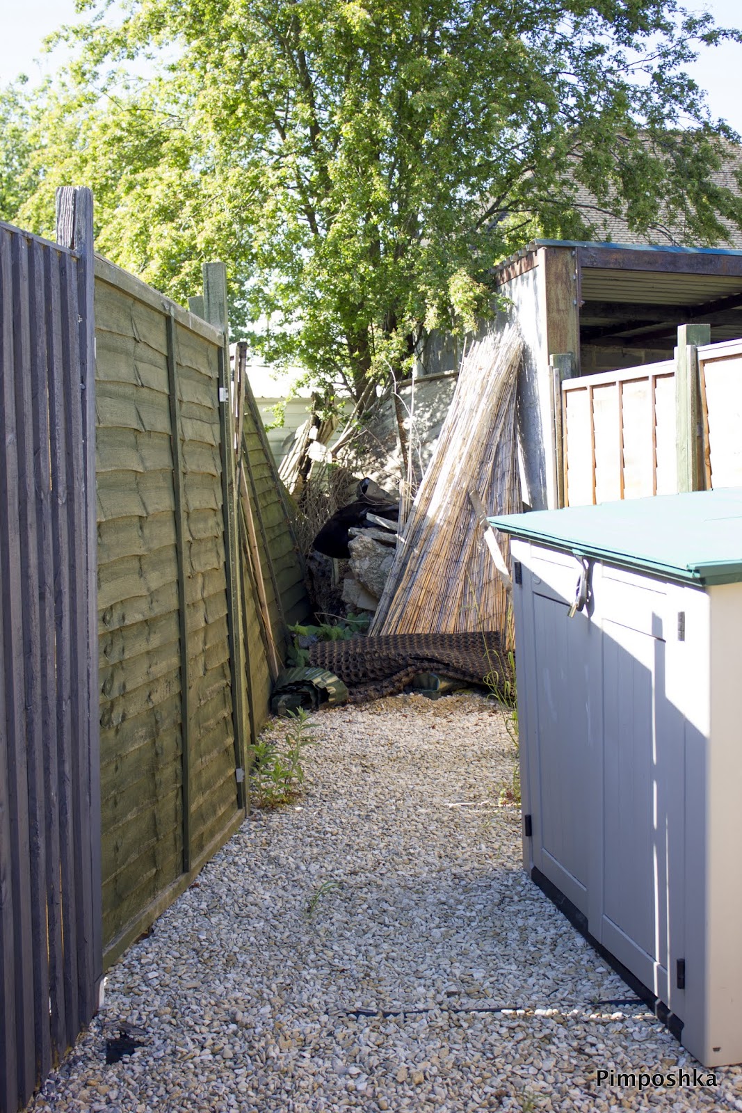 Już w pierwszym tygodniu naszego mieszkania w nowym domu rozpadł nam się kawałek płotu więc wstawiliśmy ‘plombę’, którą potem pomalowałam na szaro.